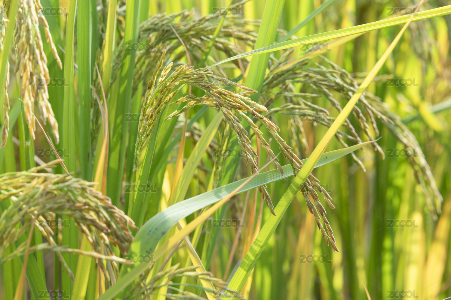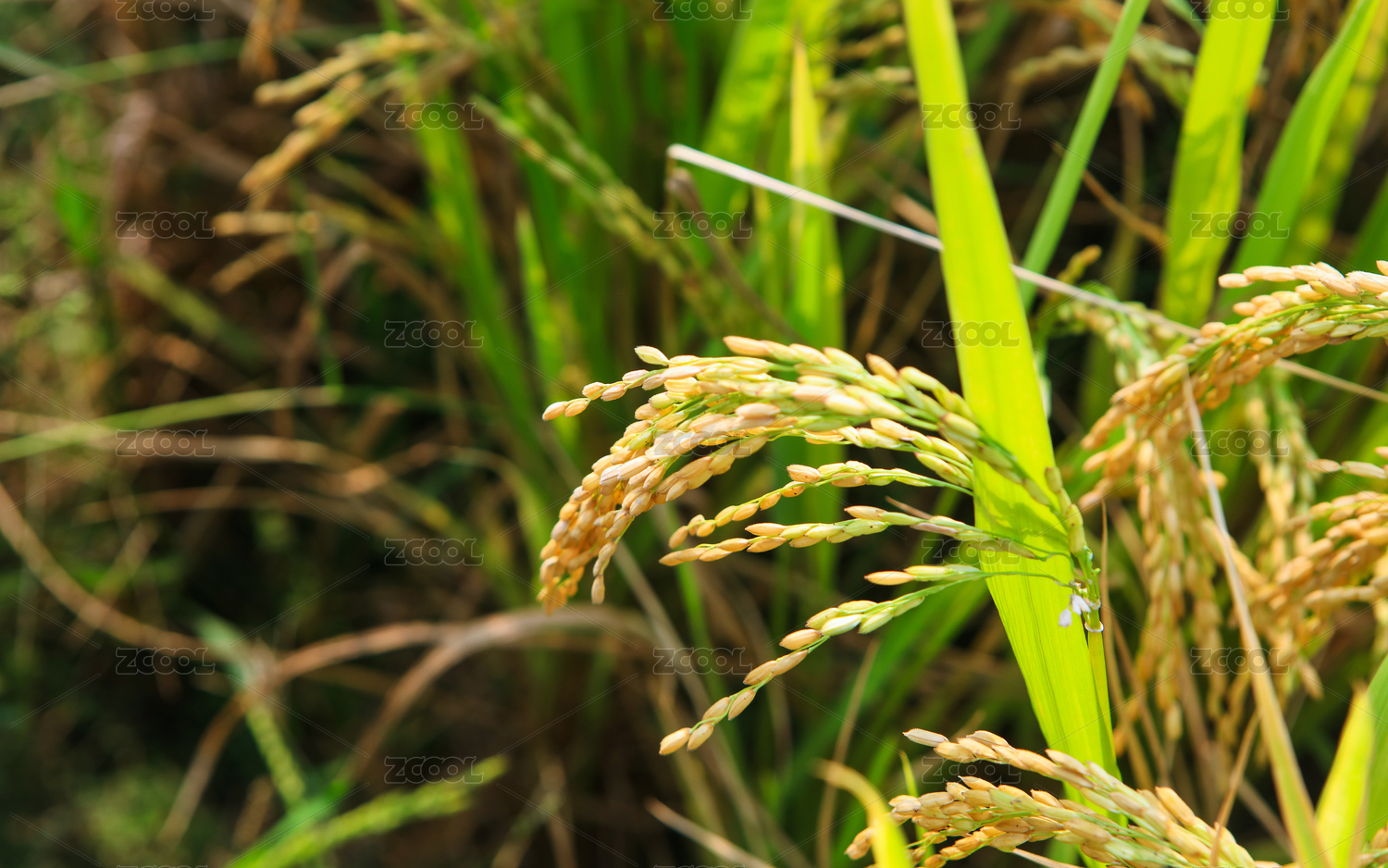 秋季丰收时节,金黄的稻穗上挂满稻谷垂下,