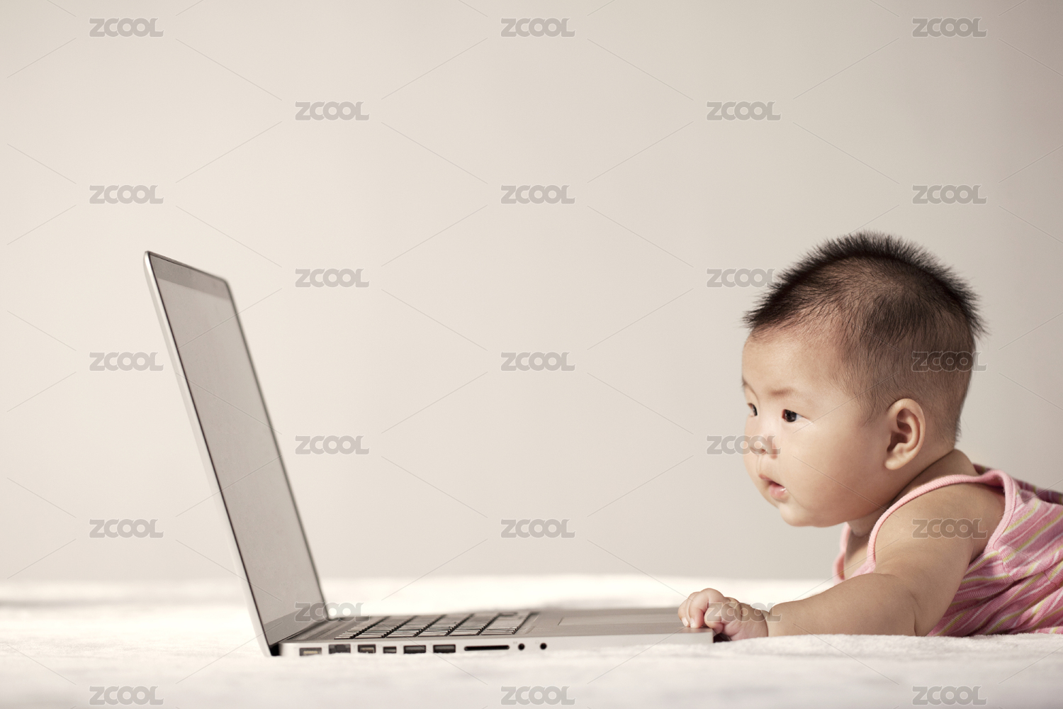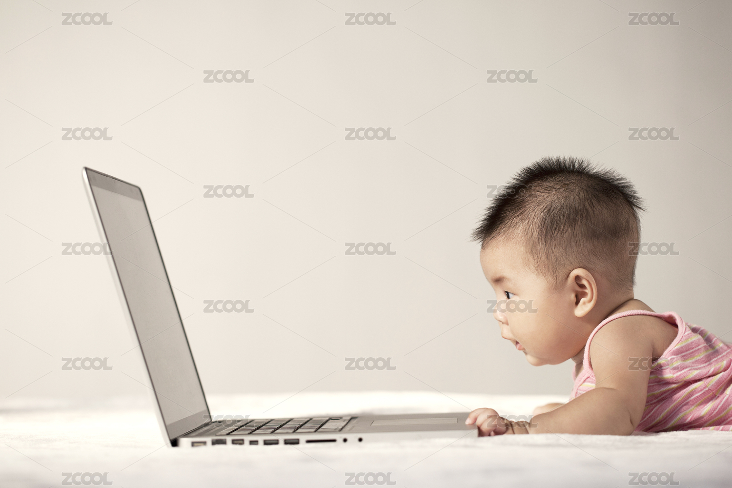 幼儿,儿童,视频,电脑,笔记本,认真,专注,学习,观看,动画片