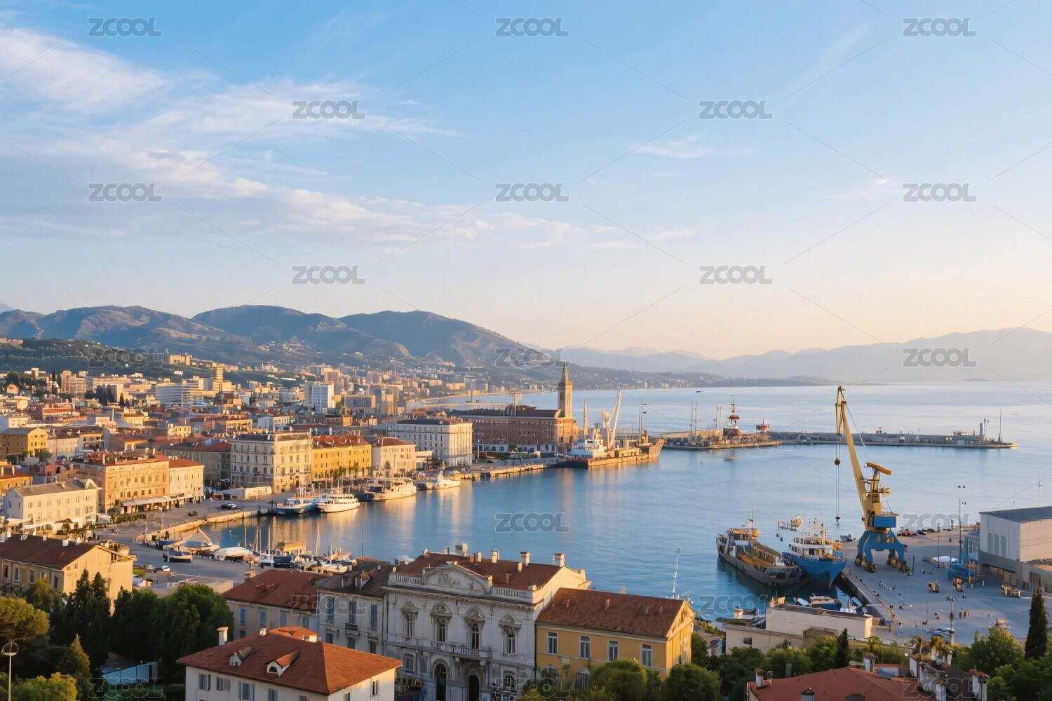 美丽海滨城市港口风光