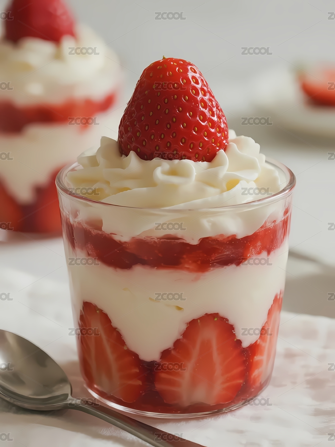 用草莓和奶油装饰的方形草莓果馅慕斯蛋糕