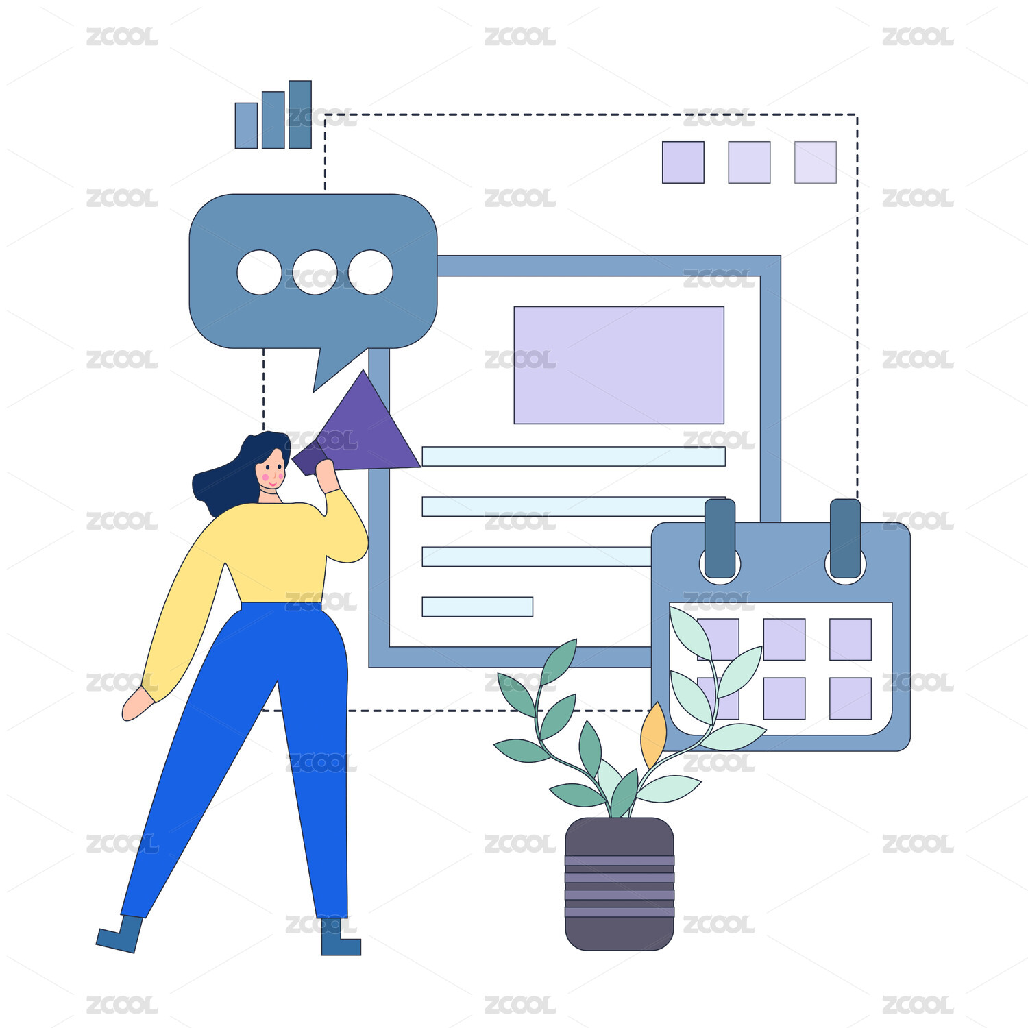 虚拟的人物社交沟通概念商业扁平矢量手绘插