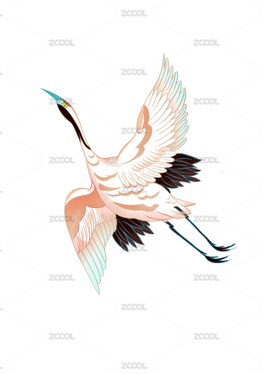 仙鹤丹顶鹤新中式清新国风透明底元素