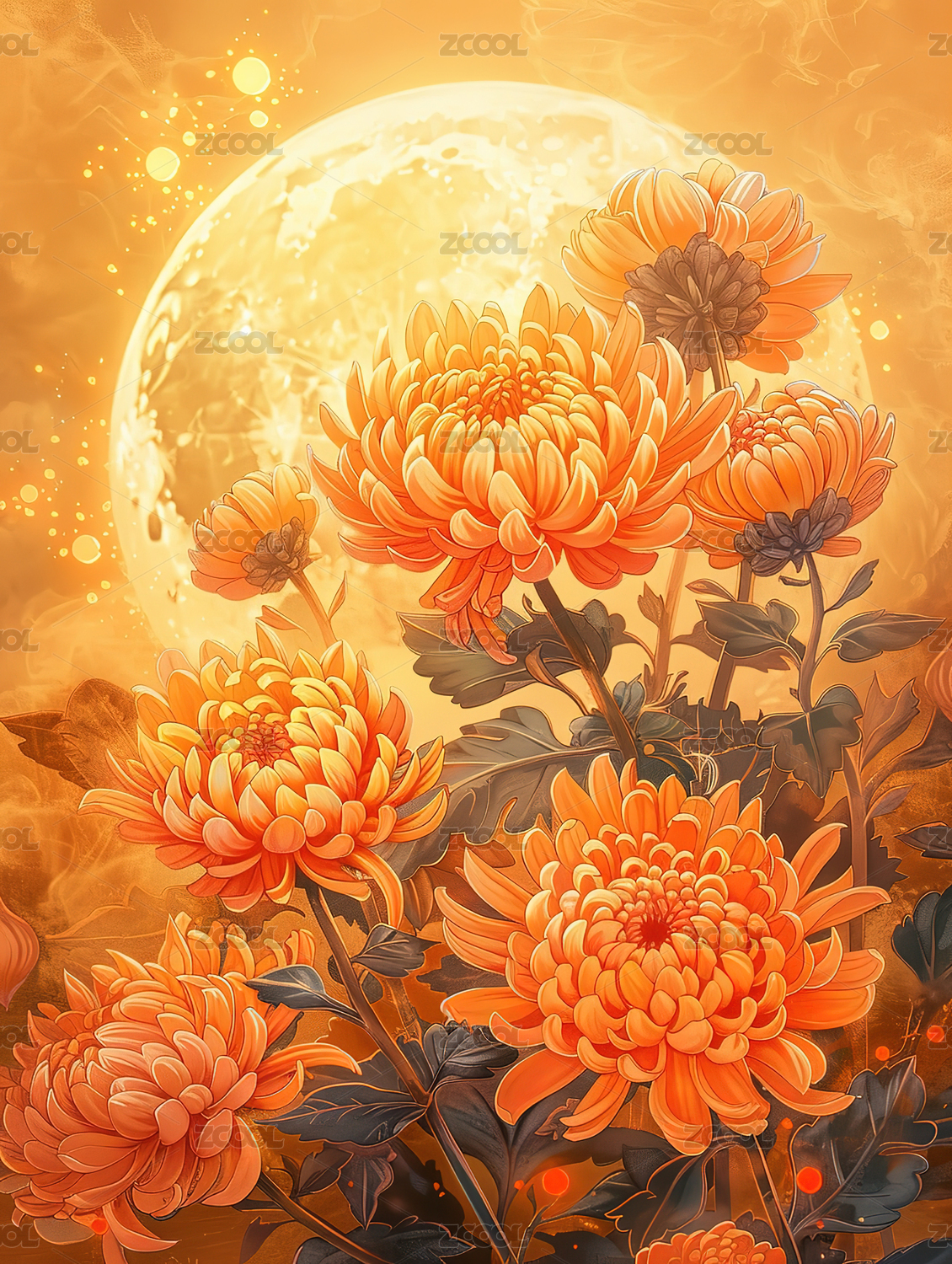 重阳节,菊花,红色,黄色,绿色,插画,绘画,水墨画,节日,旅游