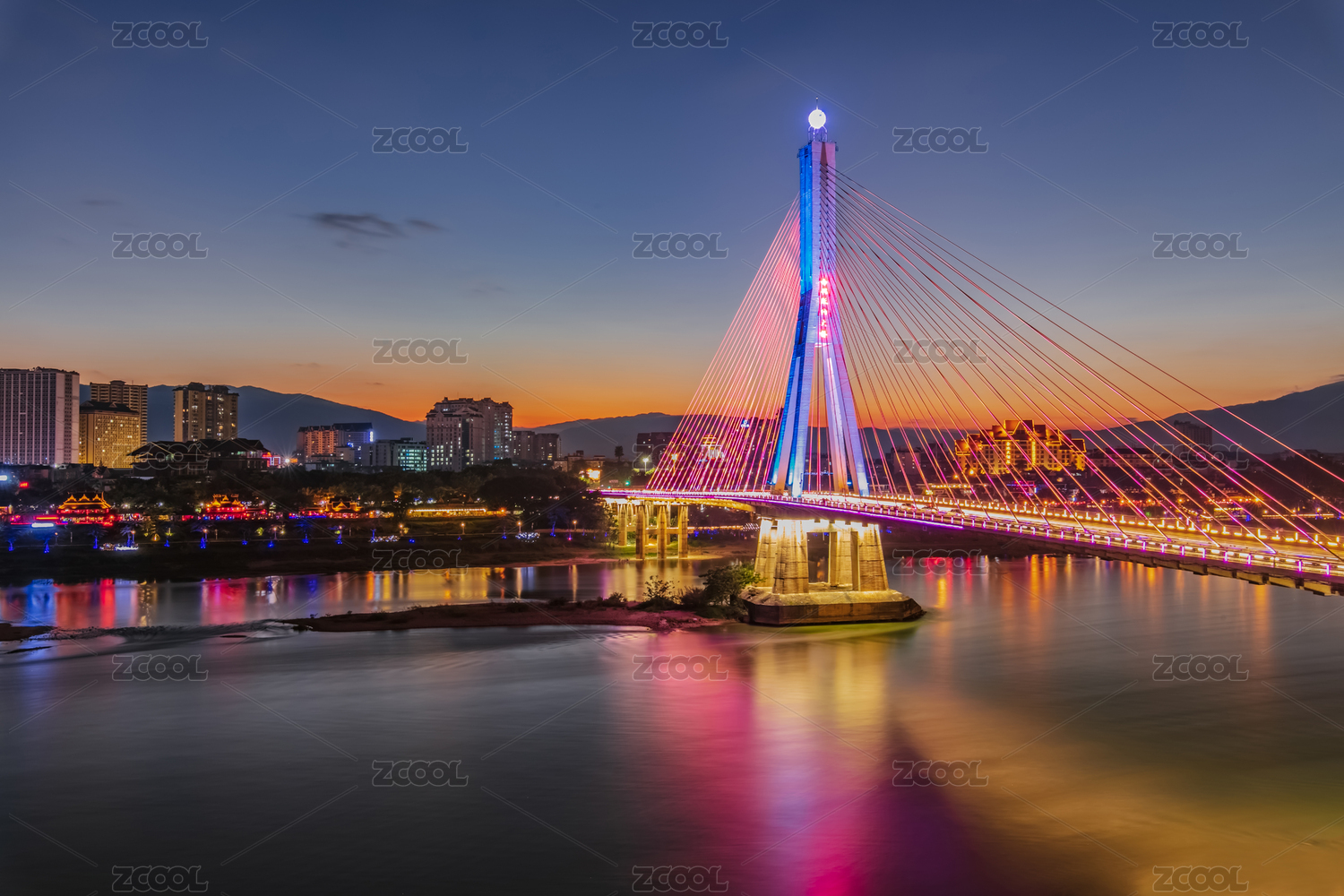 中国云南省景洪市澜沧江夜晚西双版纳大桥建筑