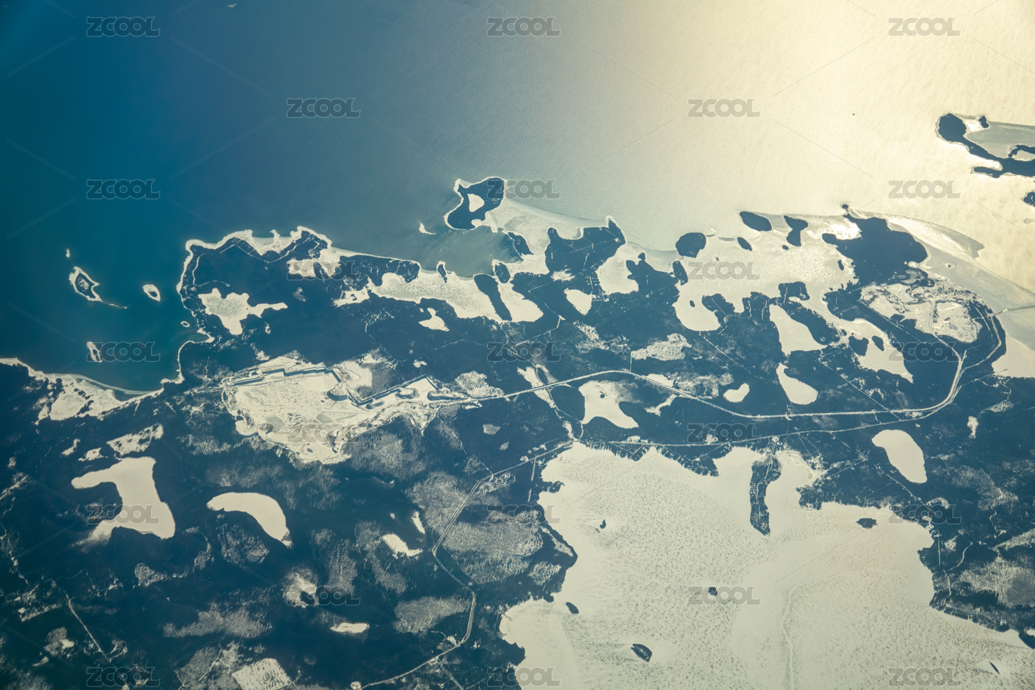 从飞机上鸟瞰北欧冬季的辽阔土地