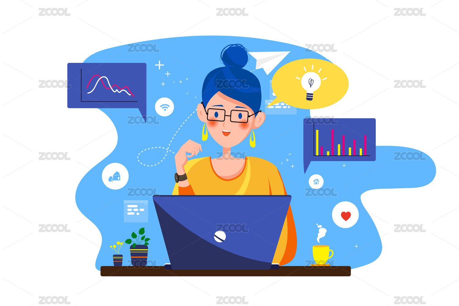 远程办公矢量插画
