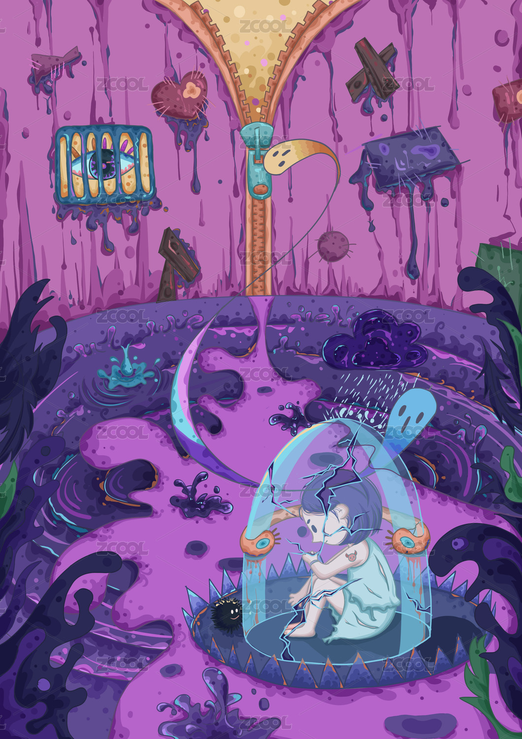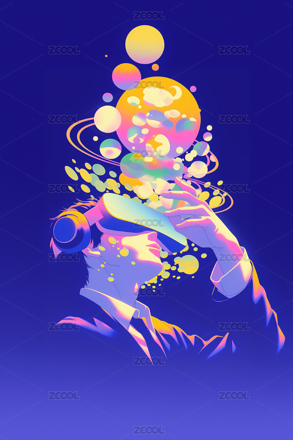 水面男性墨镜气泡抽象超感幻想潮流插画