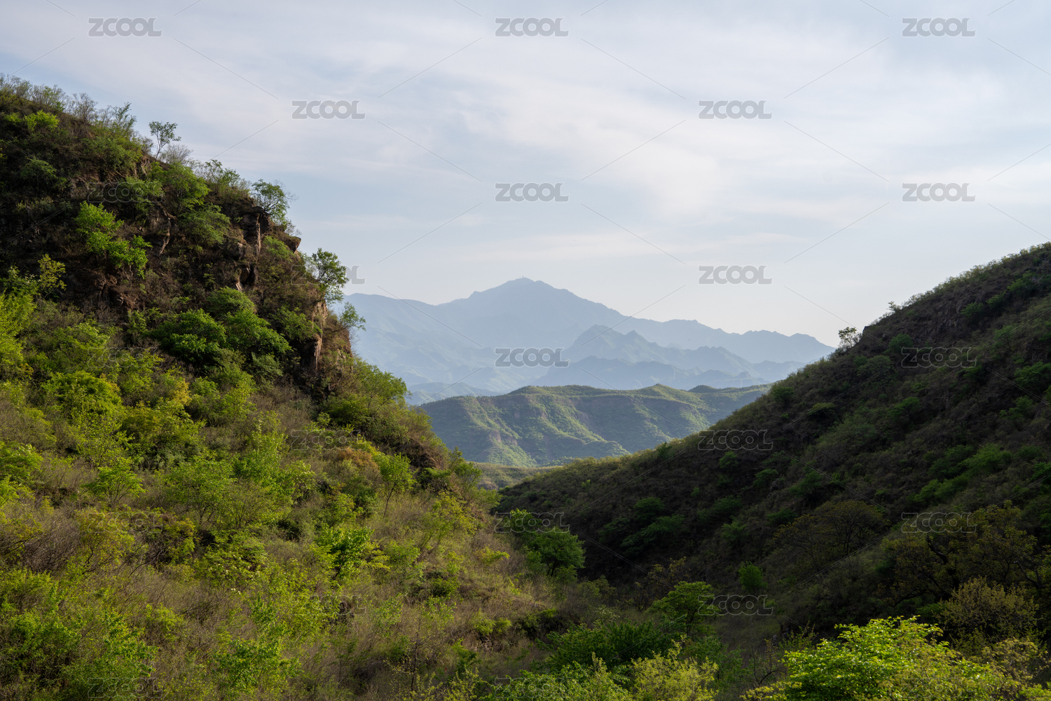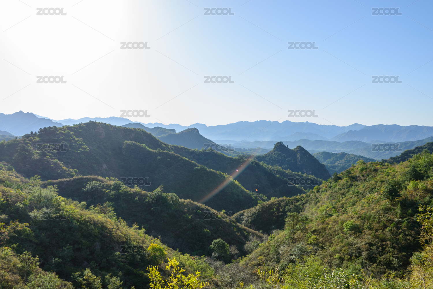 中国北京八达岭长城绿色大山自然风光