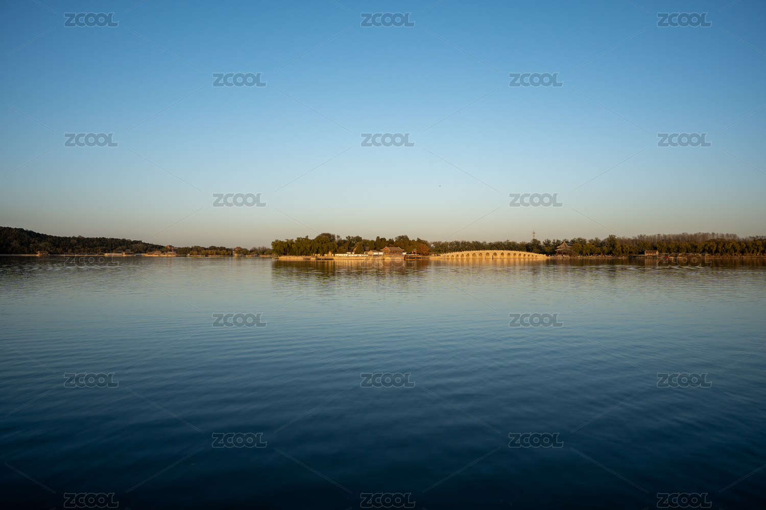 清晨宁静的颐和园昆明湖风景