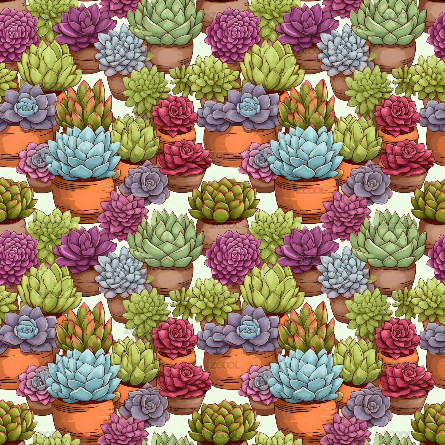 仙人掌盆栽无缝平铺四方连续纹样图案背景