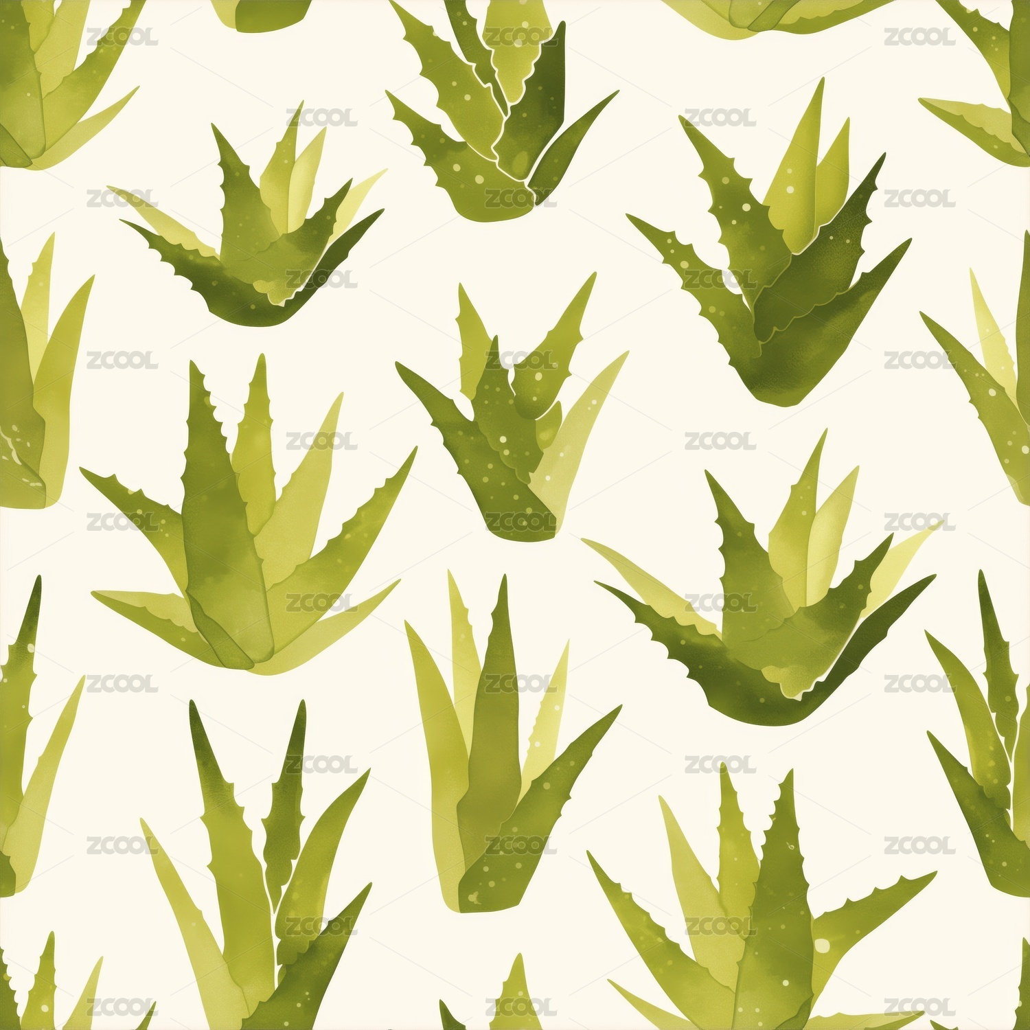 清新明亮平铺绿色芦荟四方连续无缝循环背景