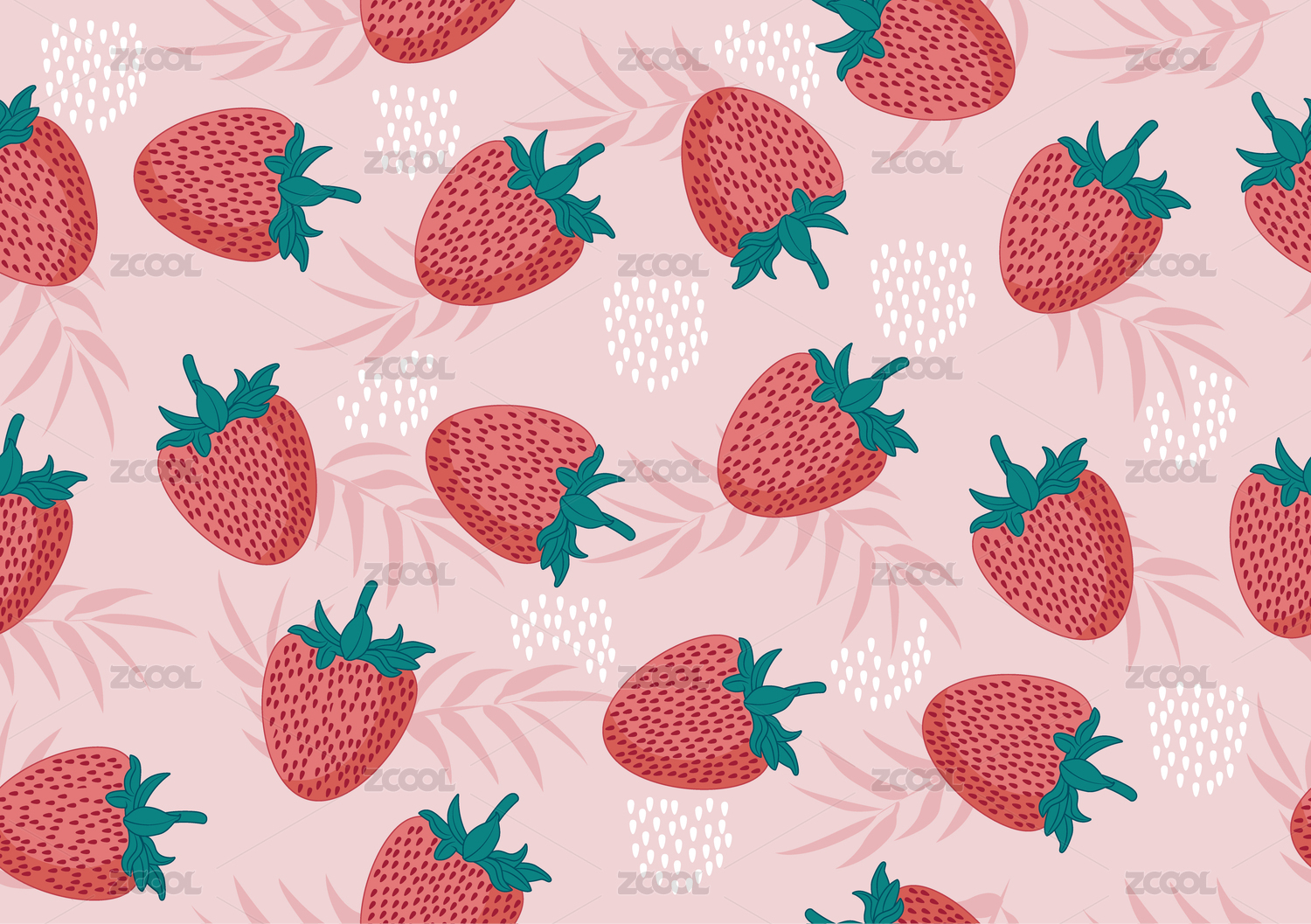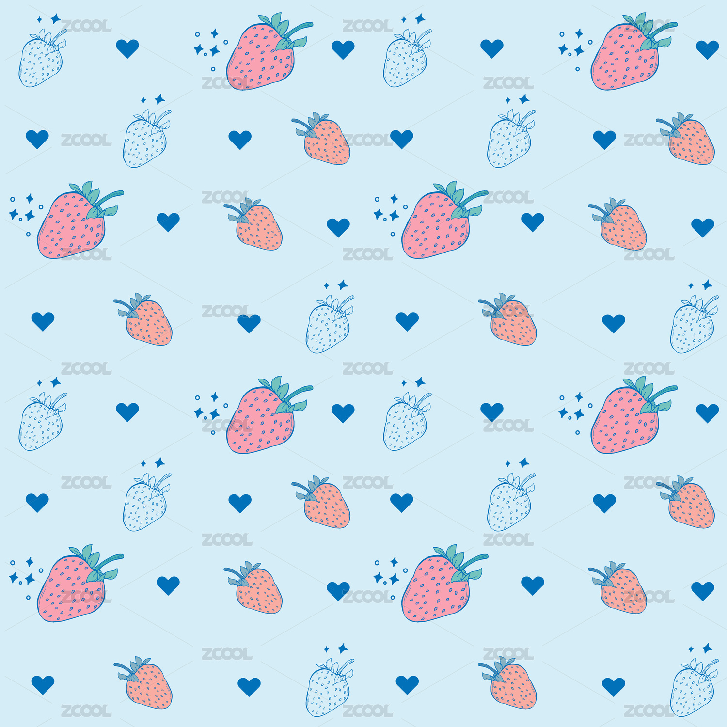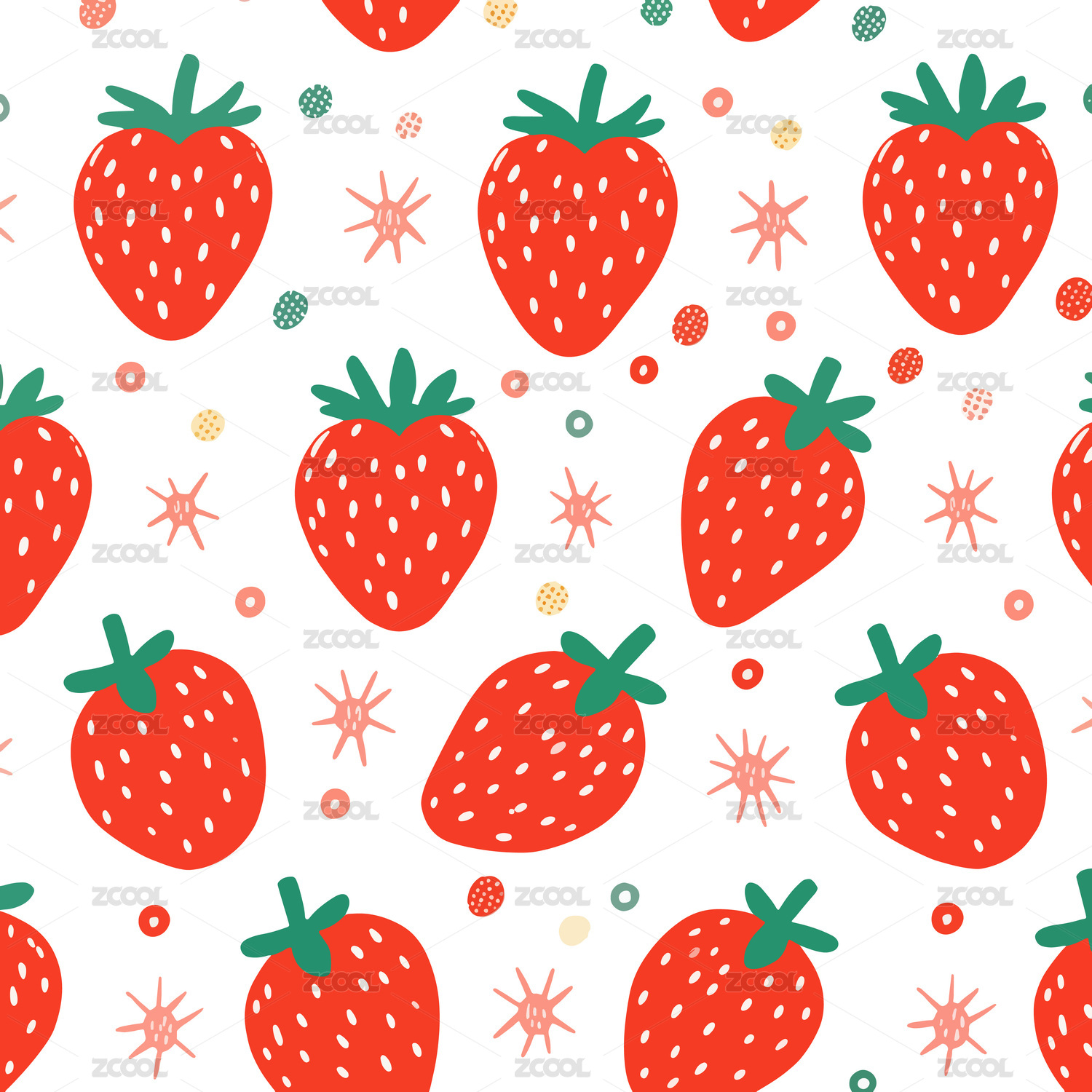 草莓图案爱心印花素材贴纸文创家纺壁纸