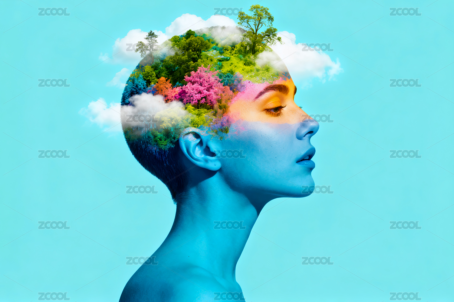 烟雾,肖像,女人,云,头,脸,头发,肩膀,深色背景,雾