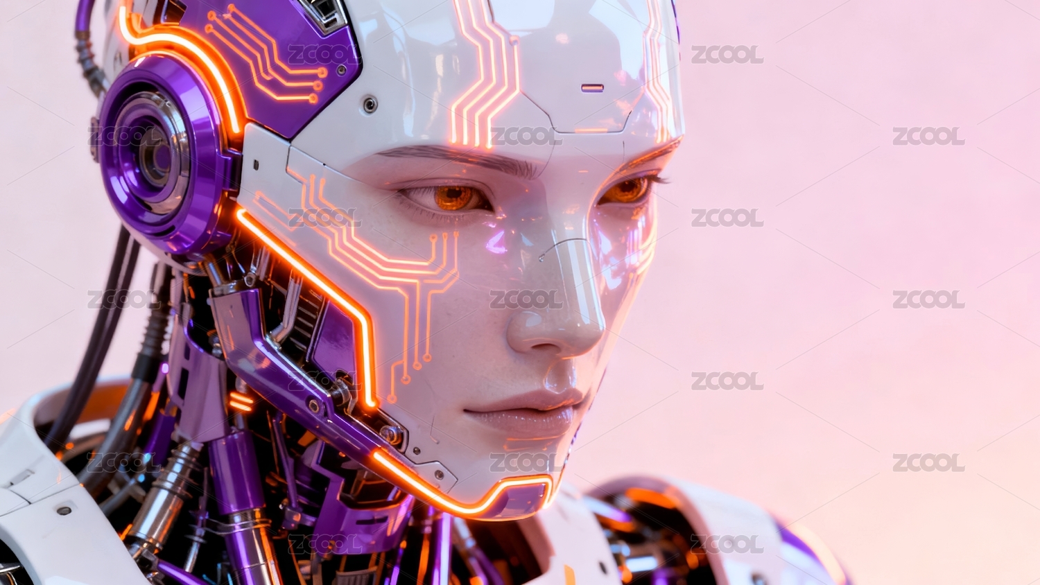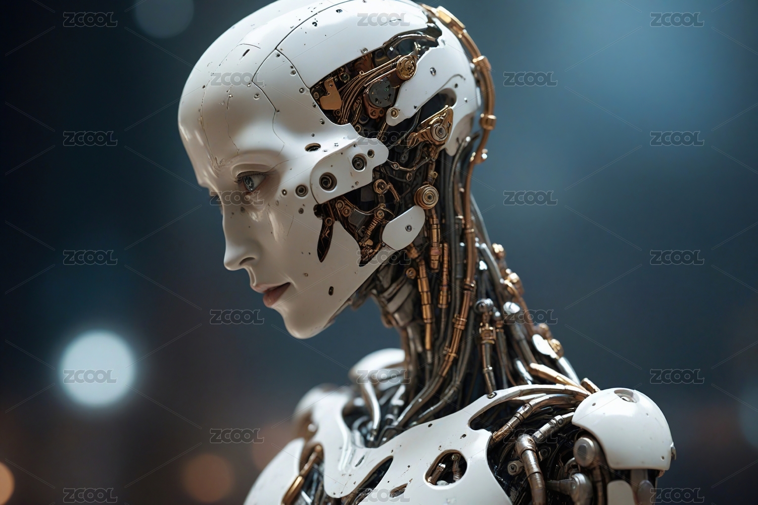 未来科技感机器人侧脸特写