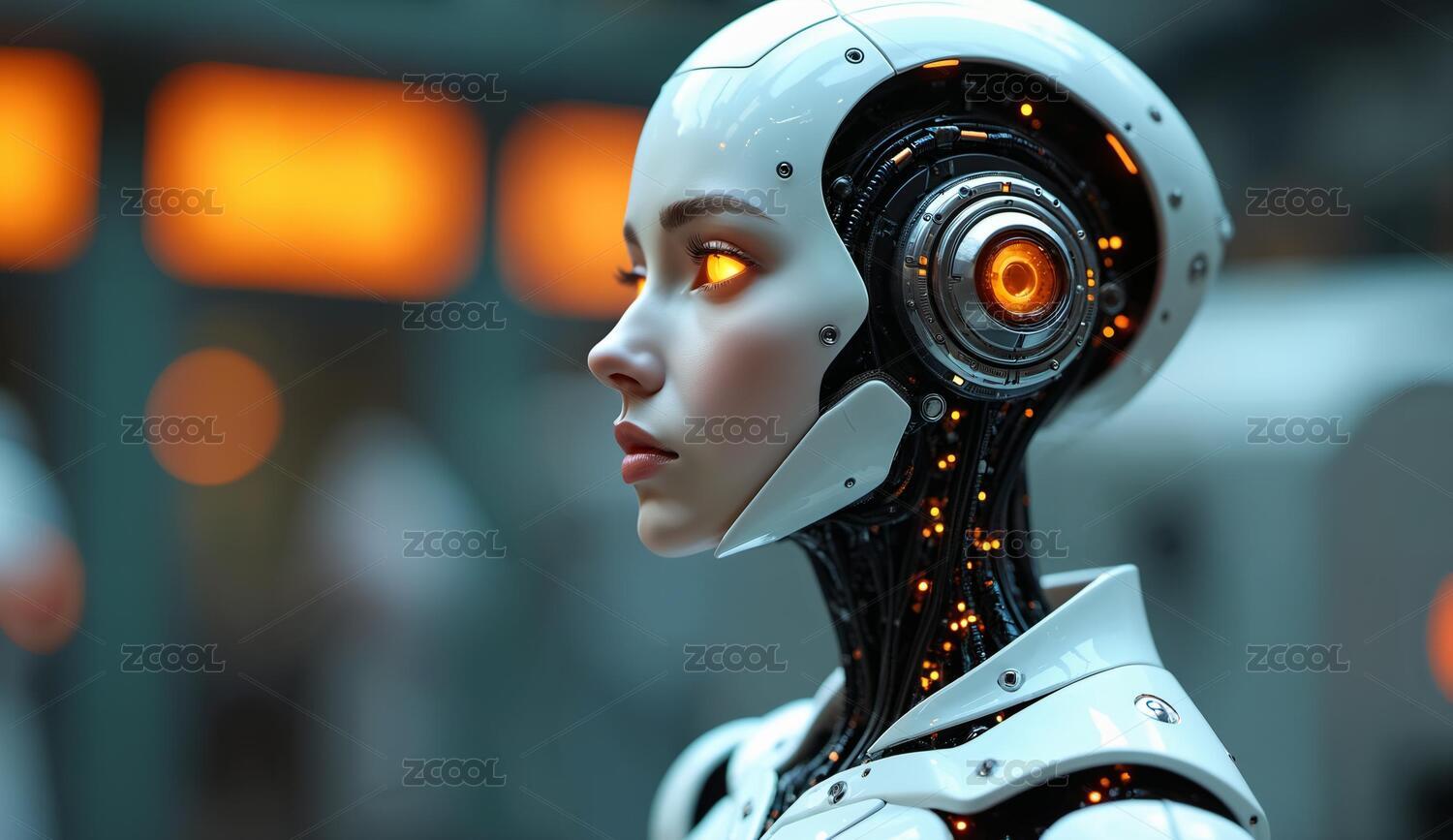未来科技的女性机器人主题