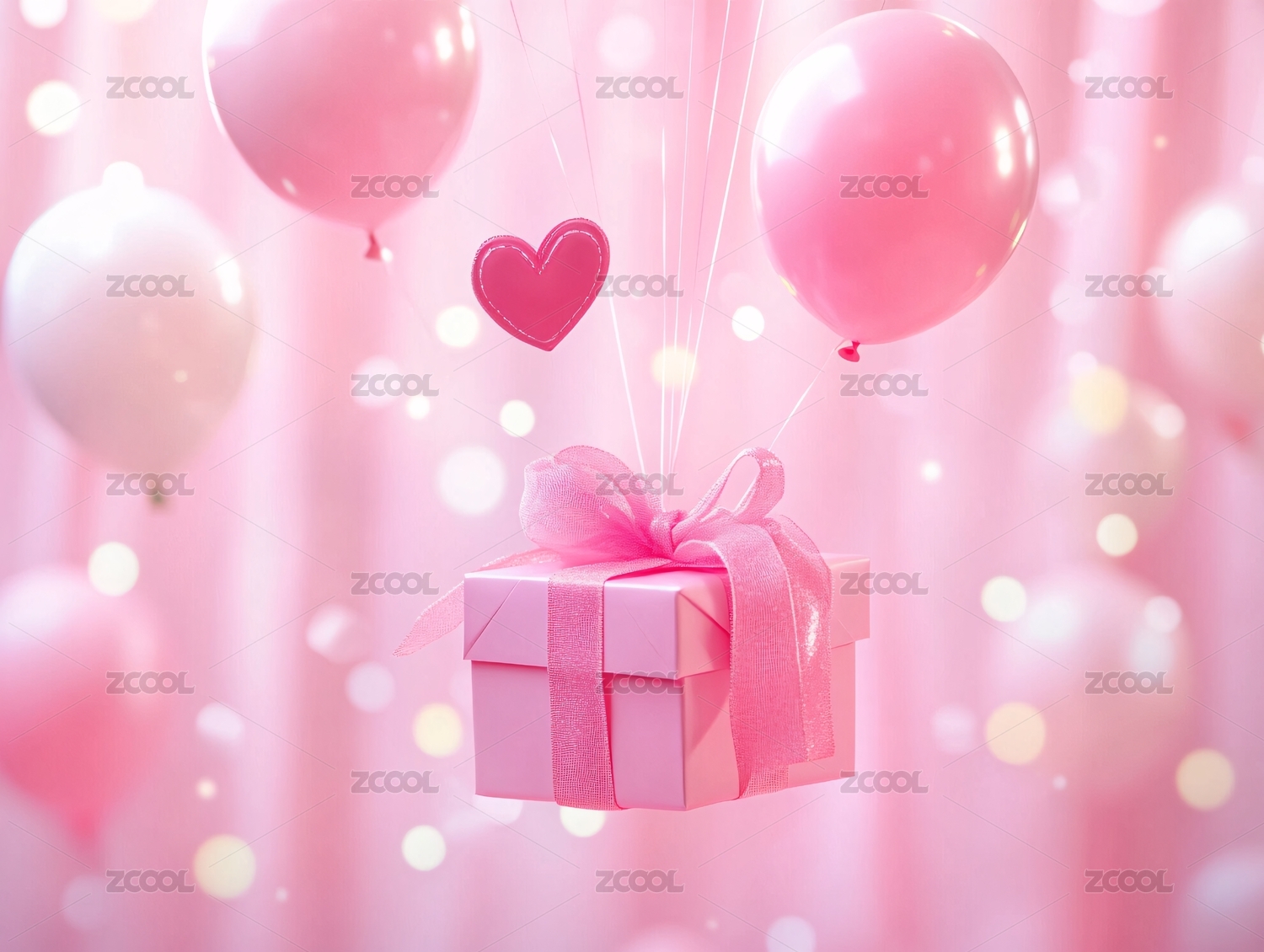 圣诞节爱心形状气球挂着粉色礼盒插画