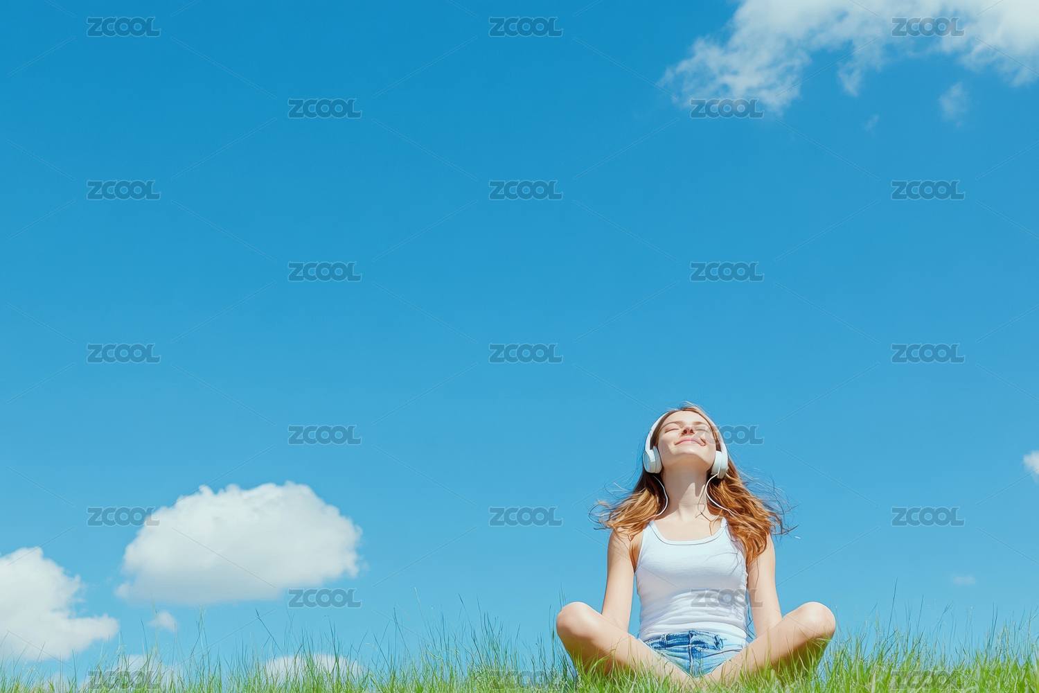 草坪,夏季,放松,自由,草皮,休闲,大自然,女人,周末,草地