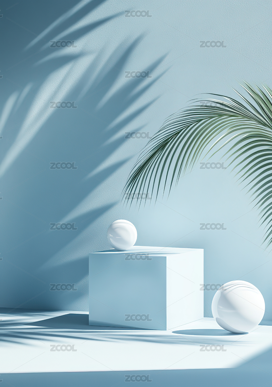简约白色展台与绿叶装饰