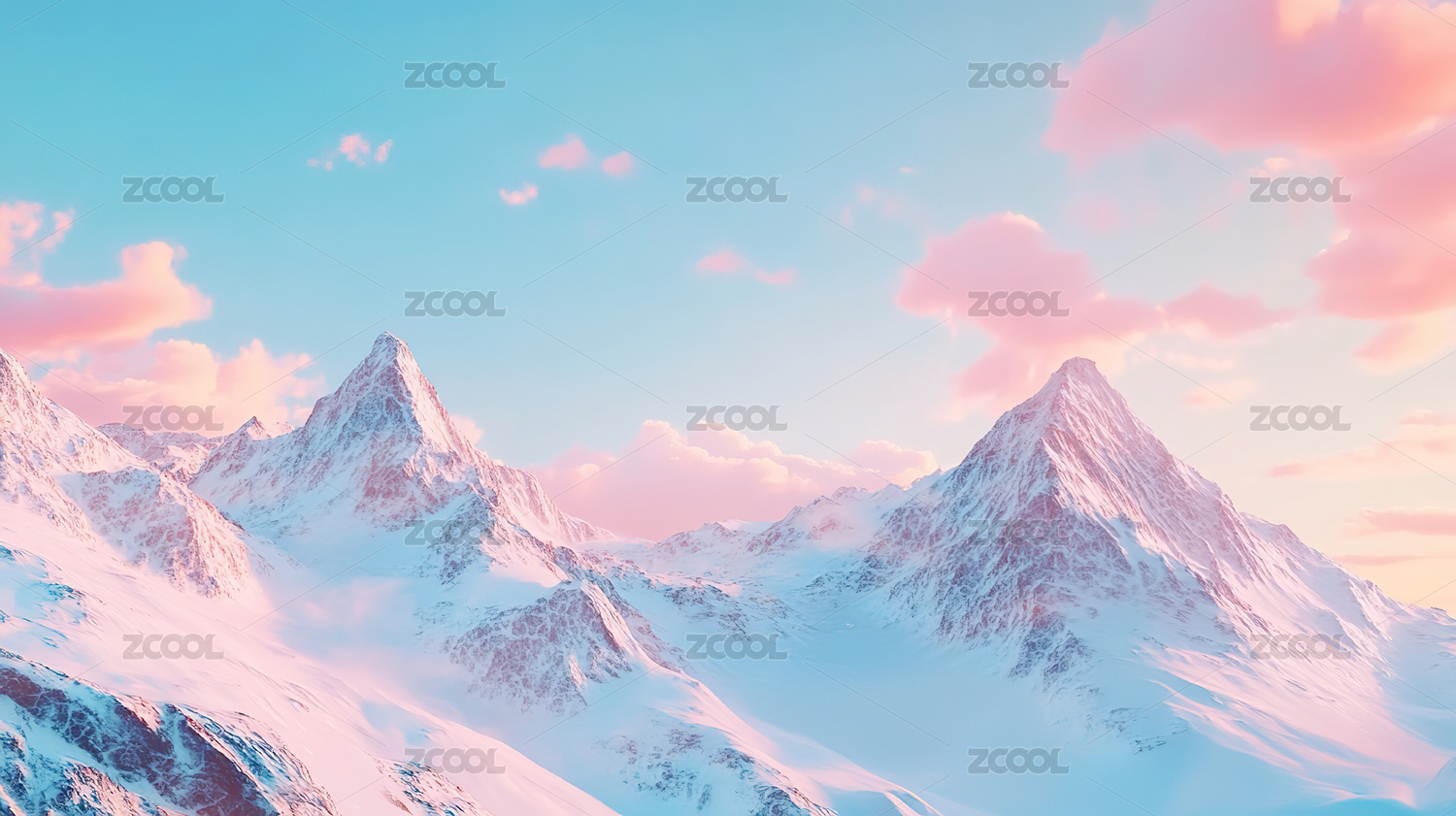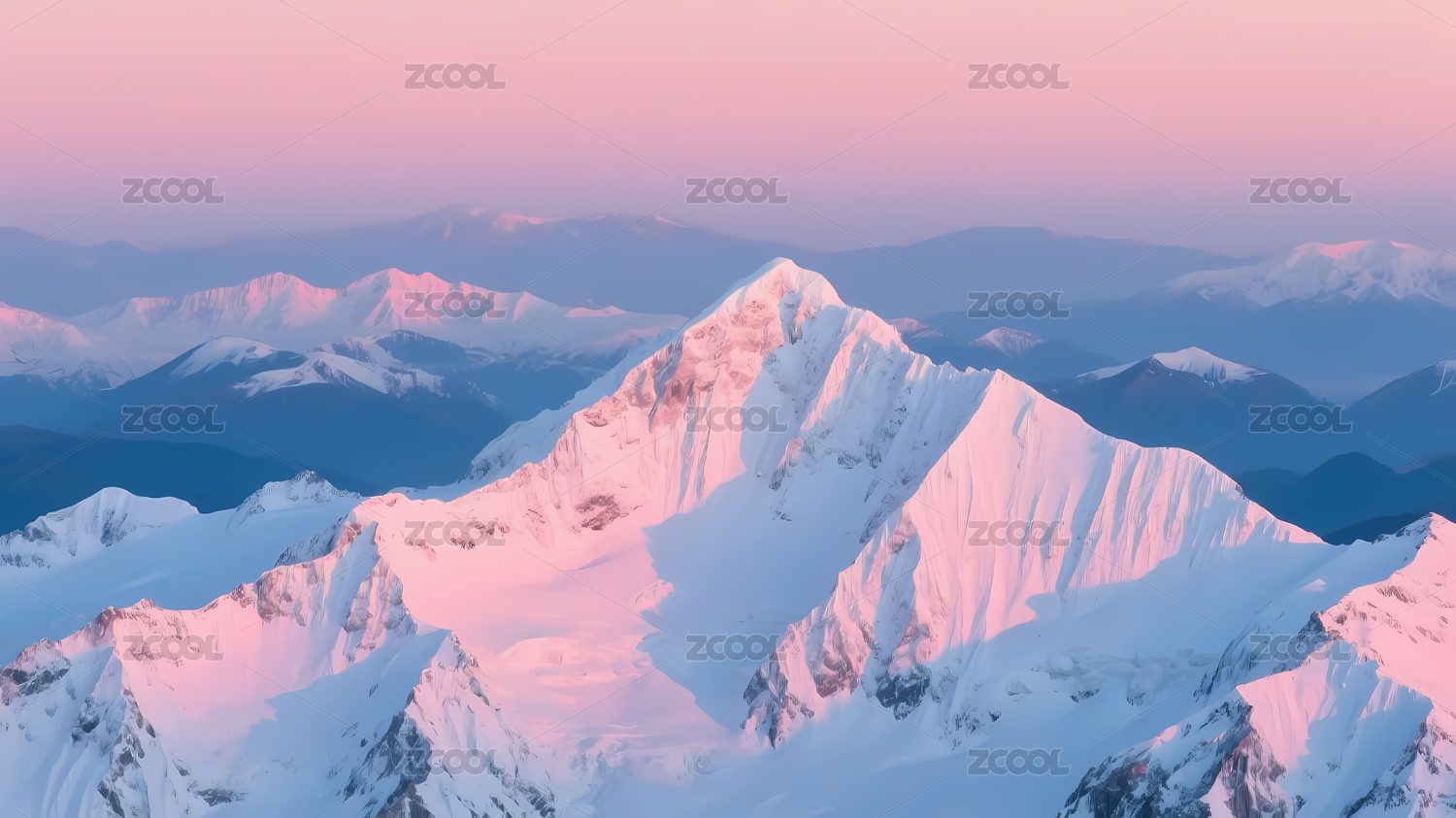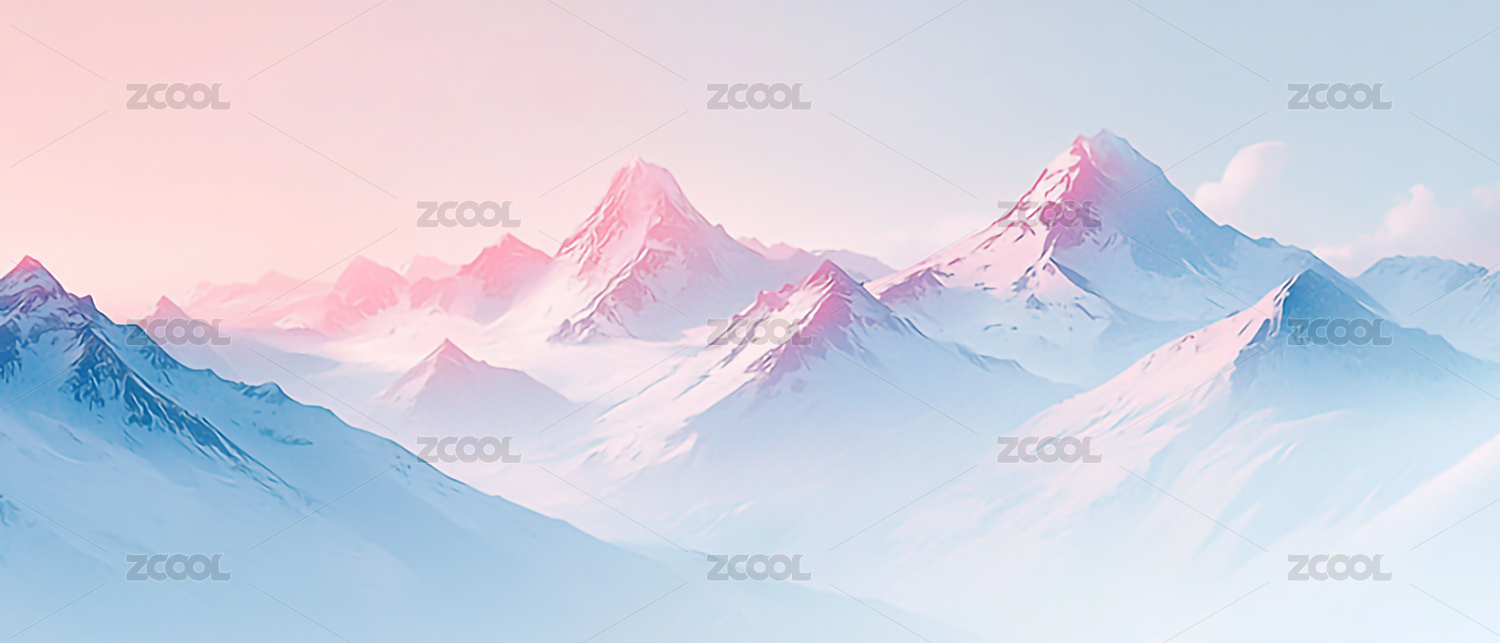 粉色夕阳照耀雪山峰