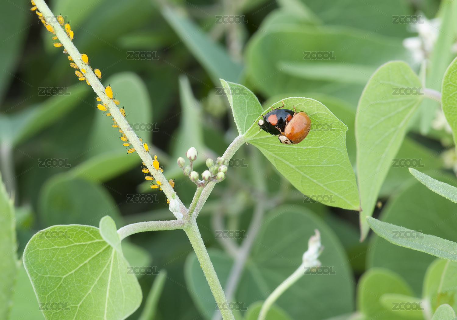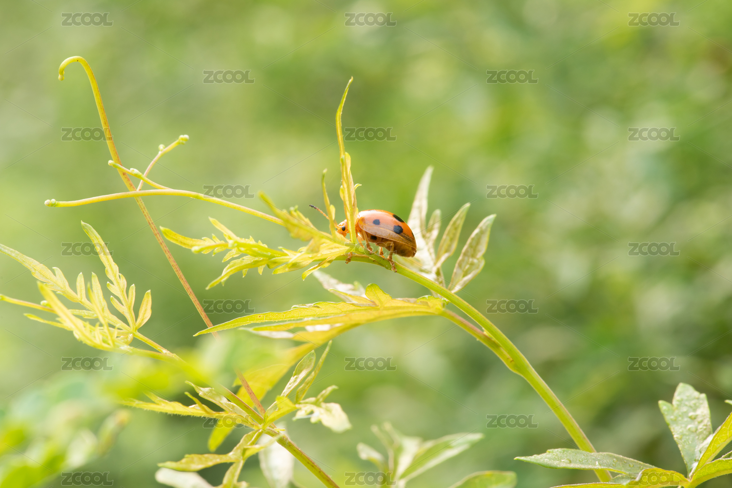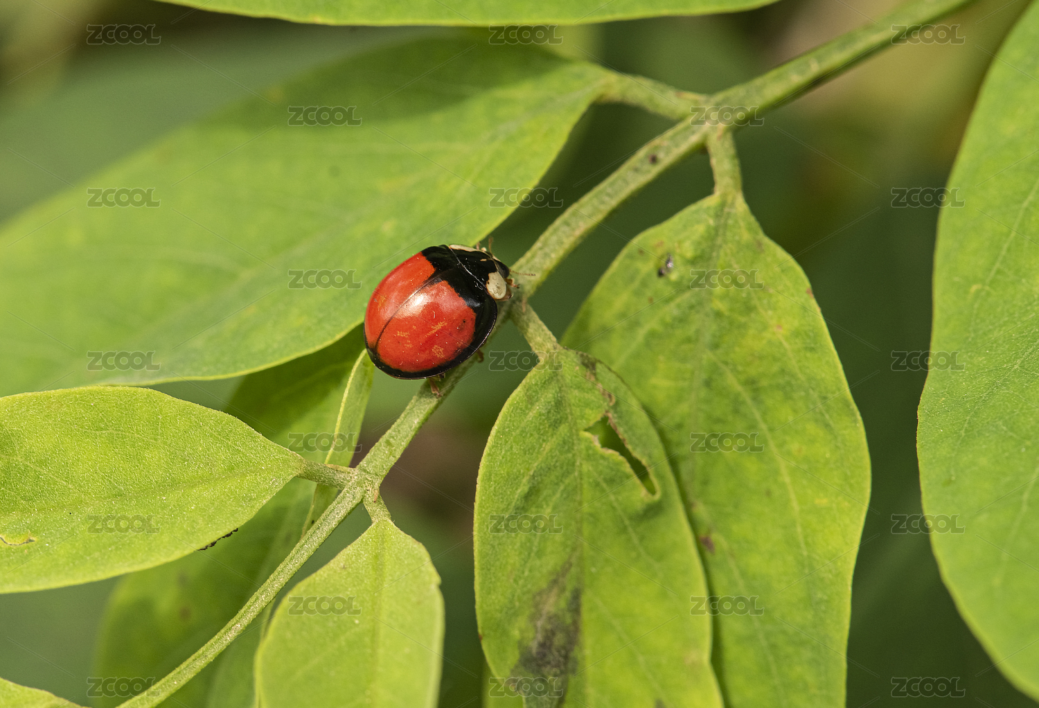 树叶上的瓢虫 鞘翅目瓢虫科动物