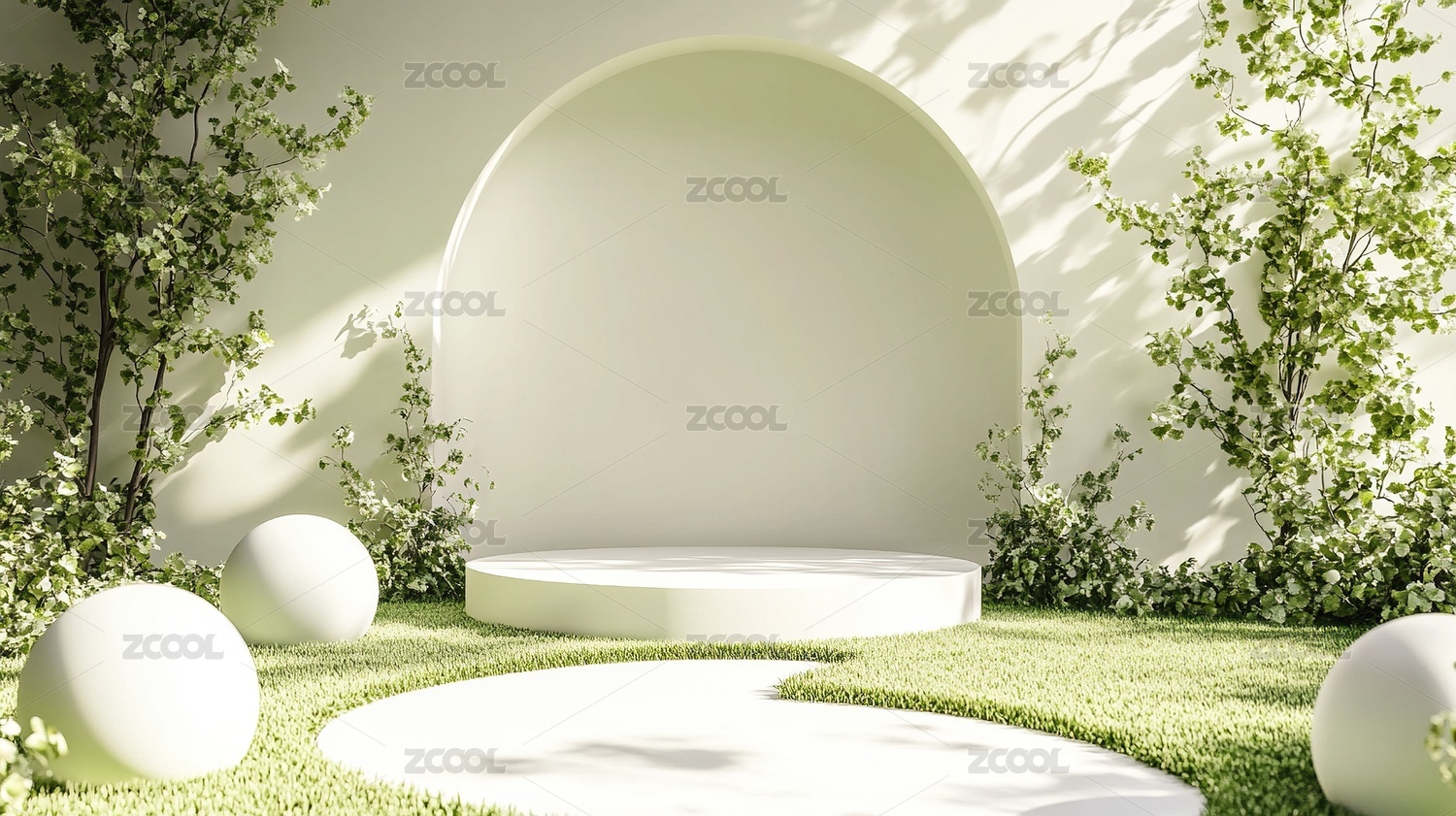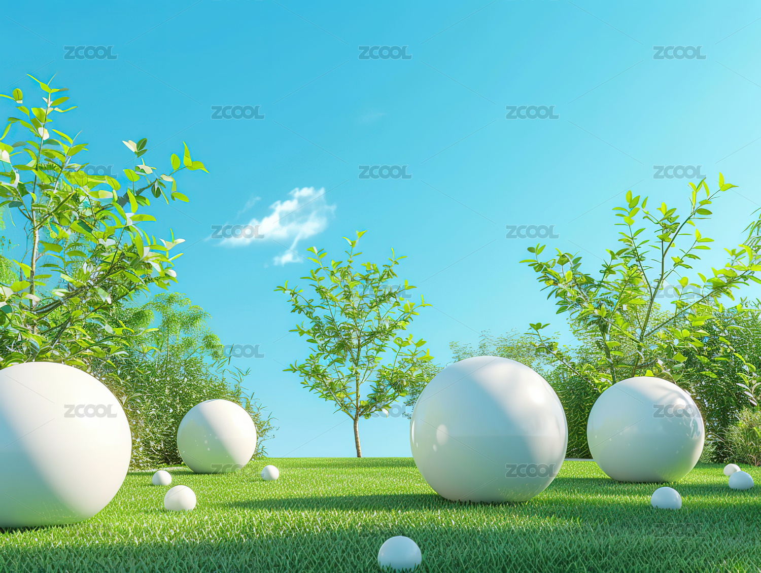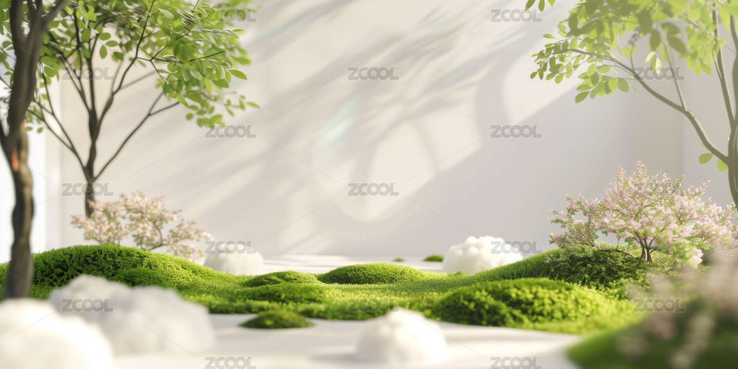 青草和苔藓毛绒植物的儿童乐园卡通3D插画