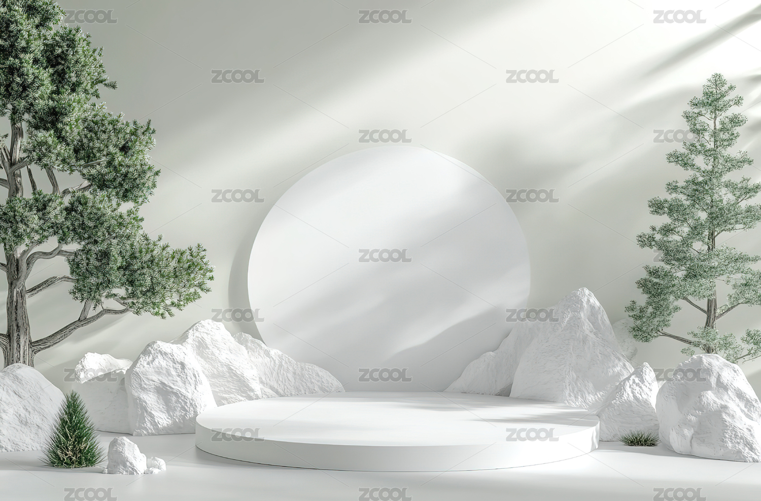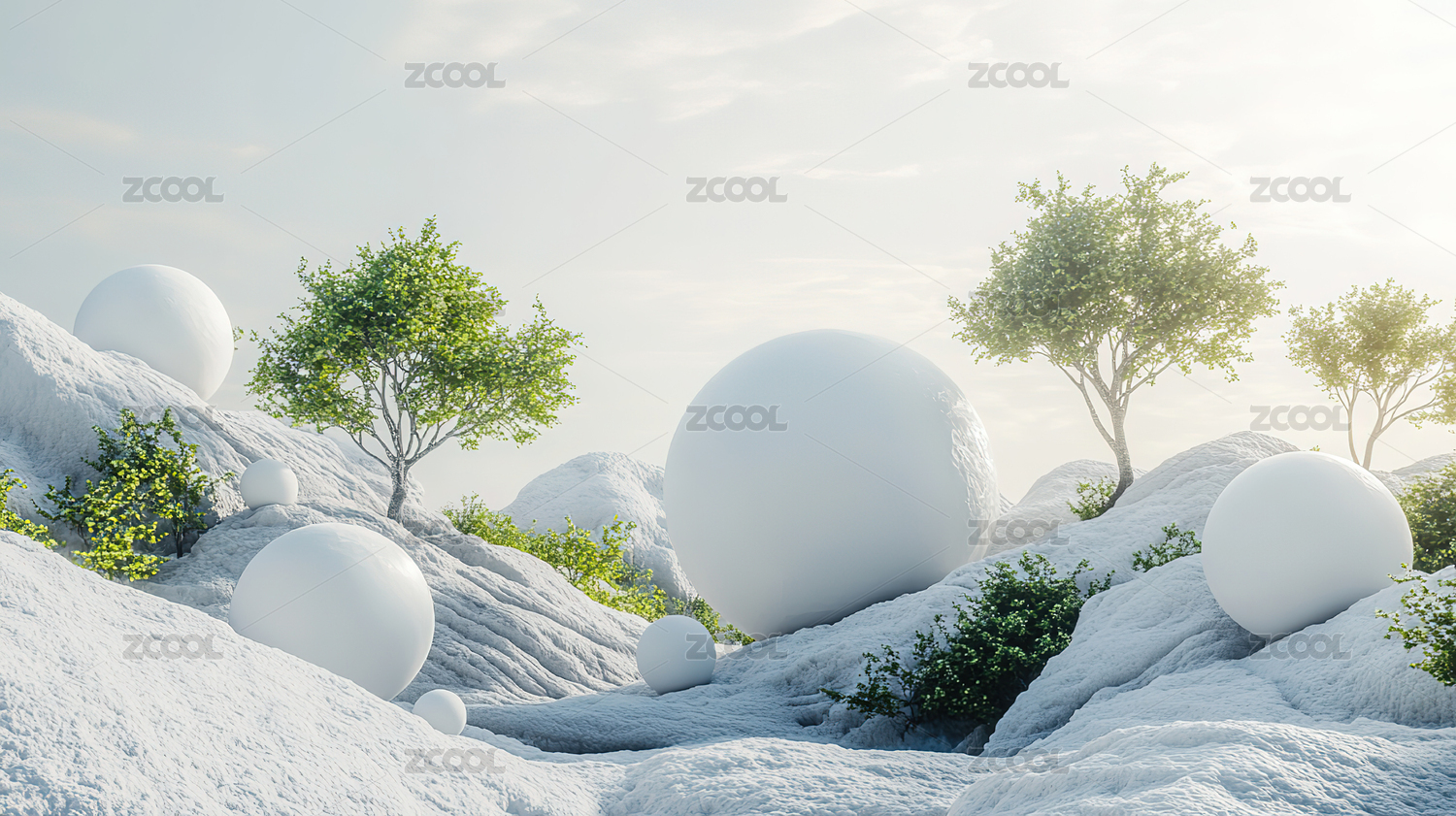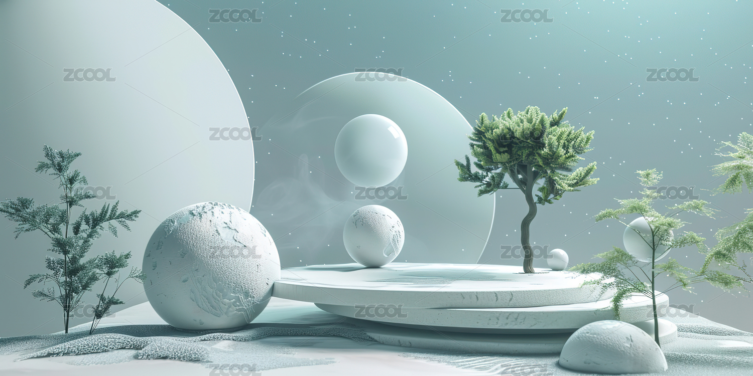 青草和苔藓毛绒植物的儿童乐园卡通3D插画