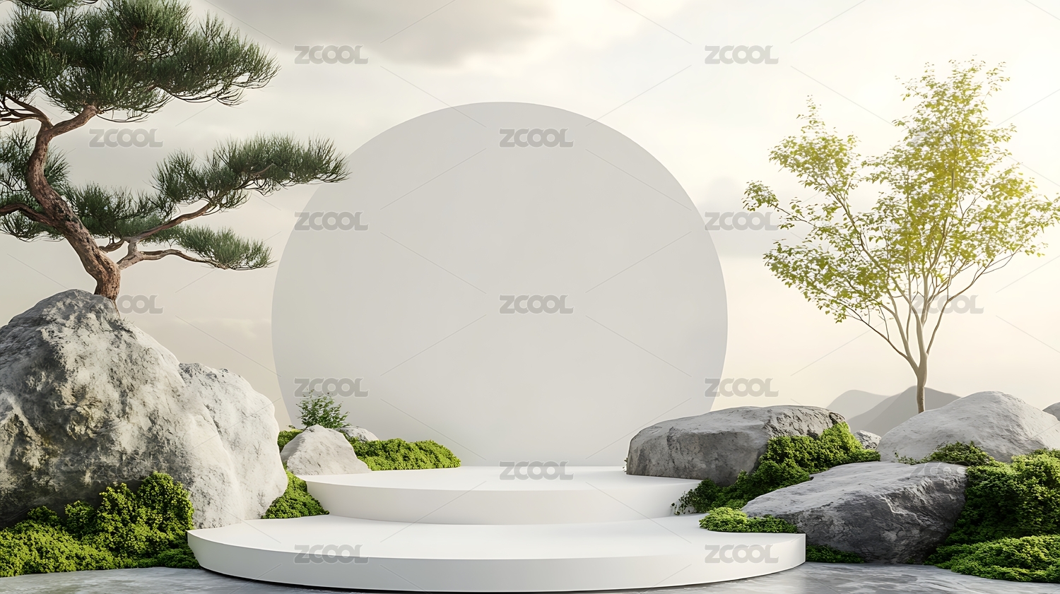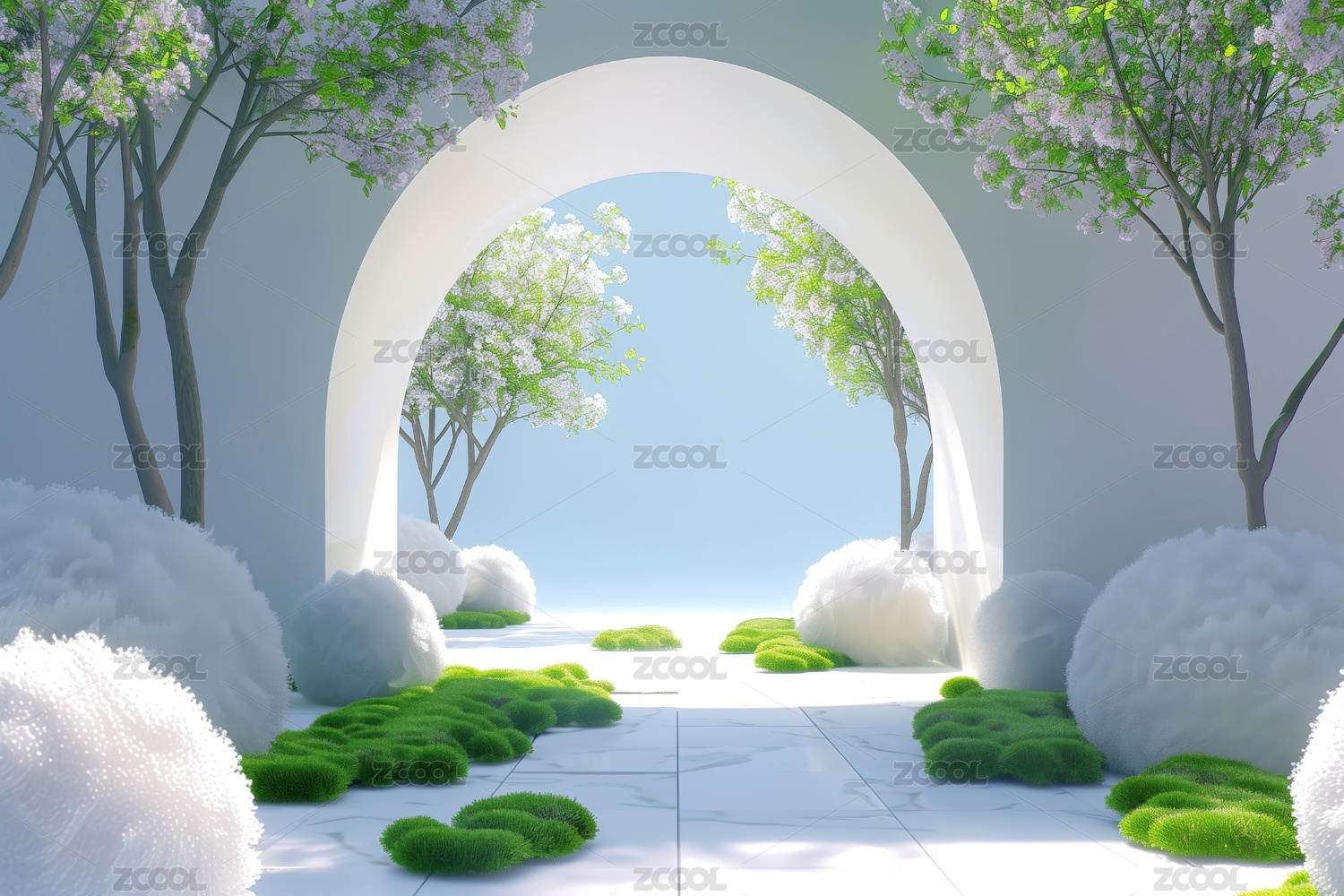 长苔藓毛绒植物石拱门儿童花园3D卡通插画