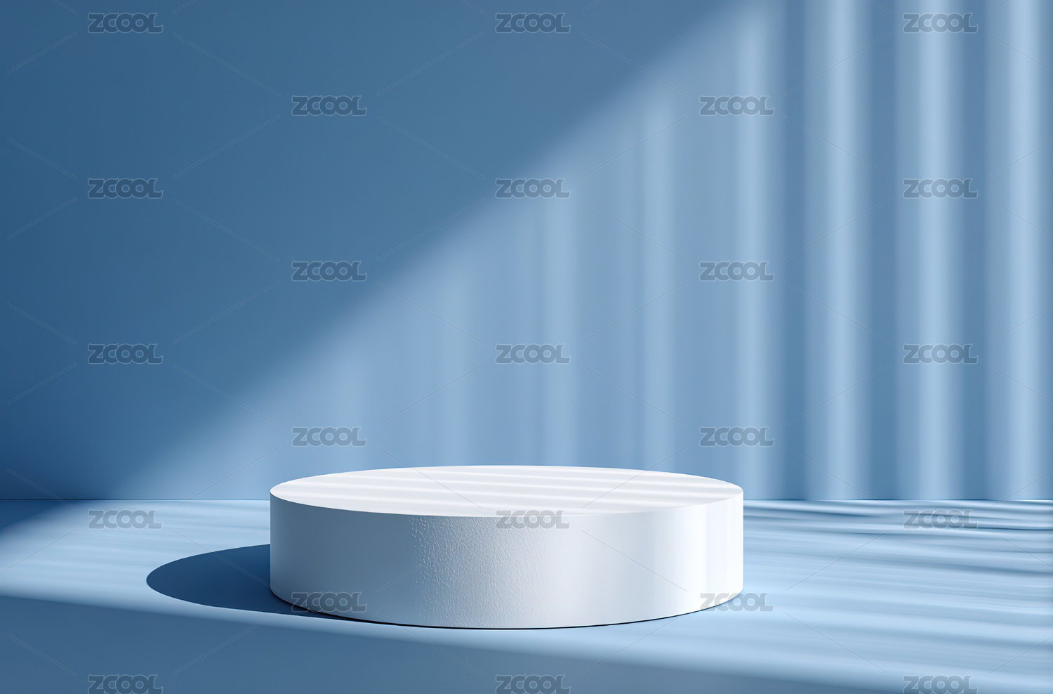 蓝色背景上的白色圆柱台