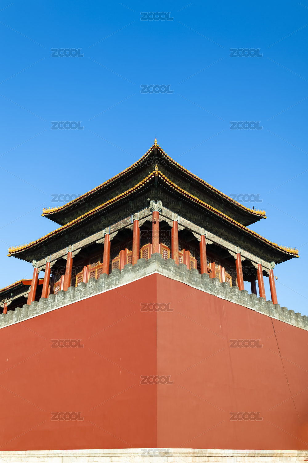 中国北京故宫红色城墙传统古代宫廷建筑楼阁