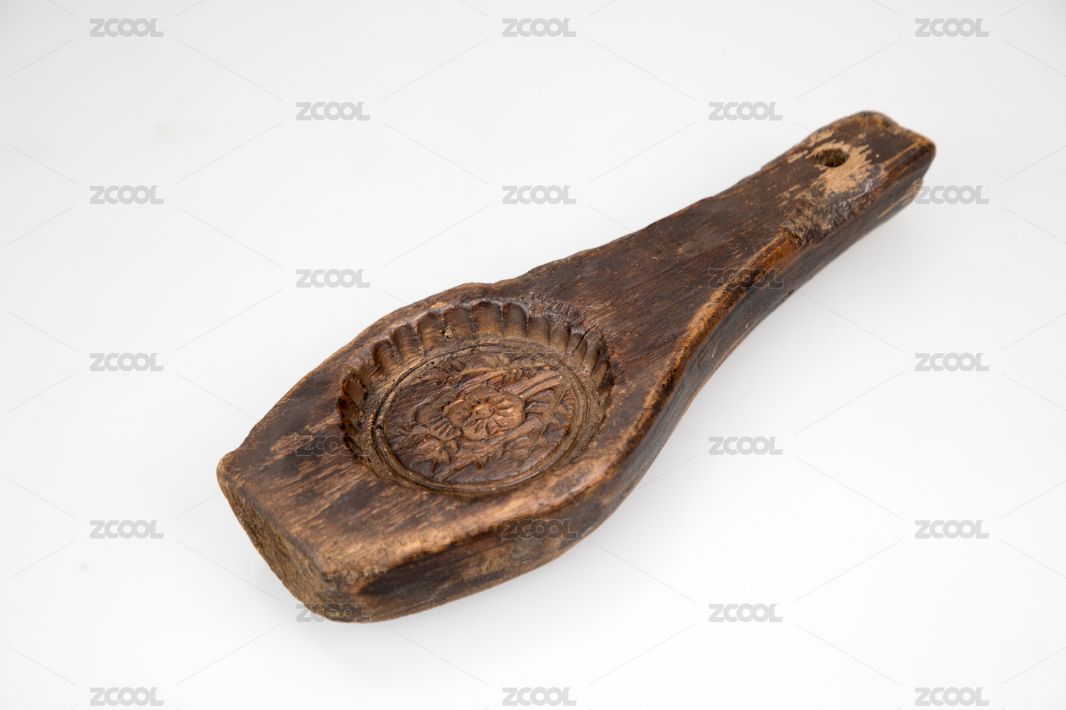 白底背景木质的传统月饼糕饼饼模
