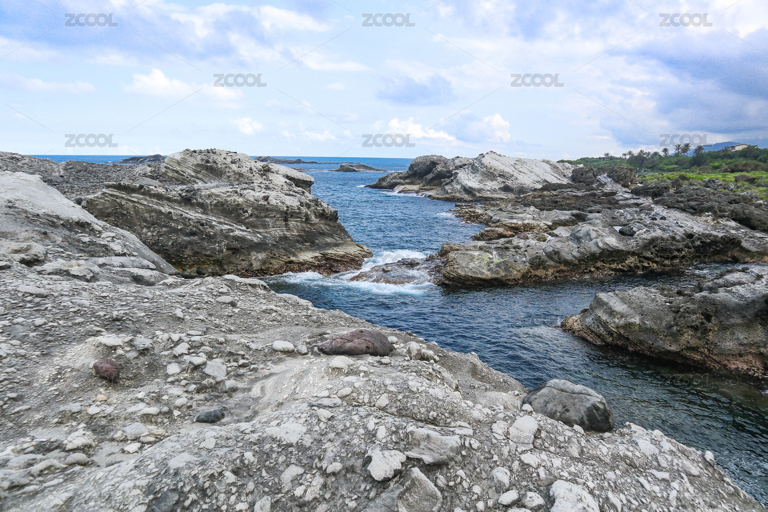 台湾垦丁龙坑生态保护区礁石大海
