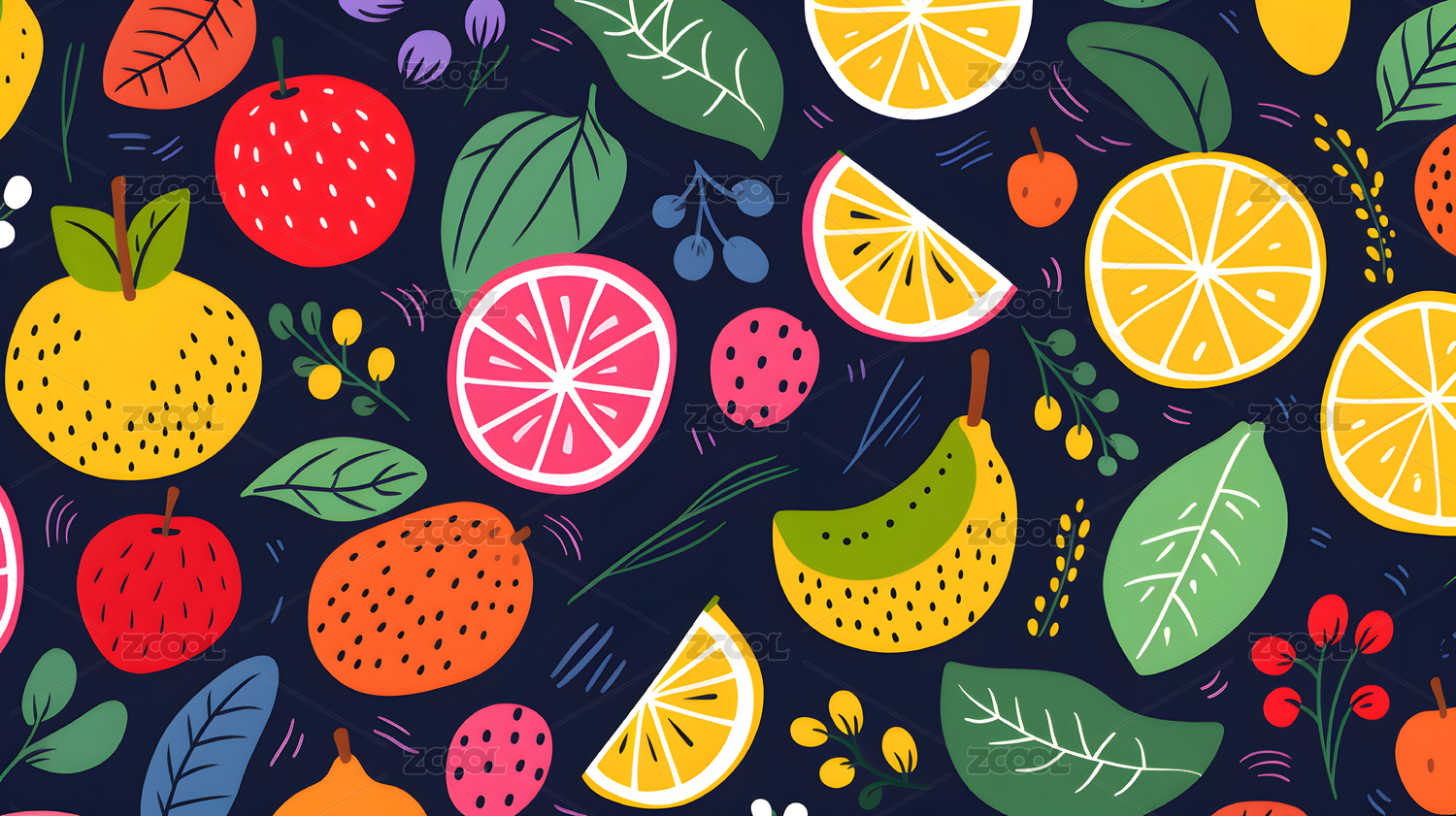 多彩水果的无缝拼接图案