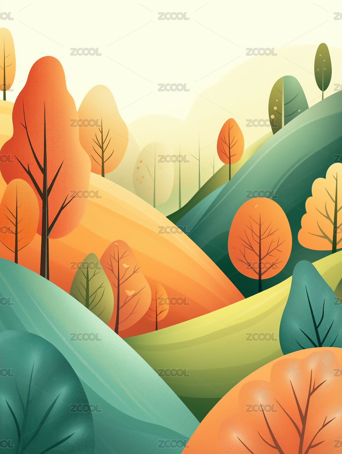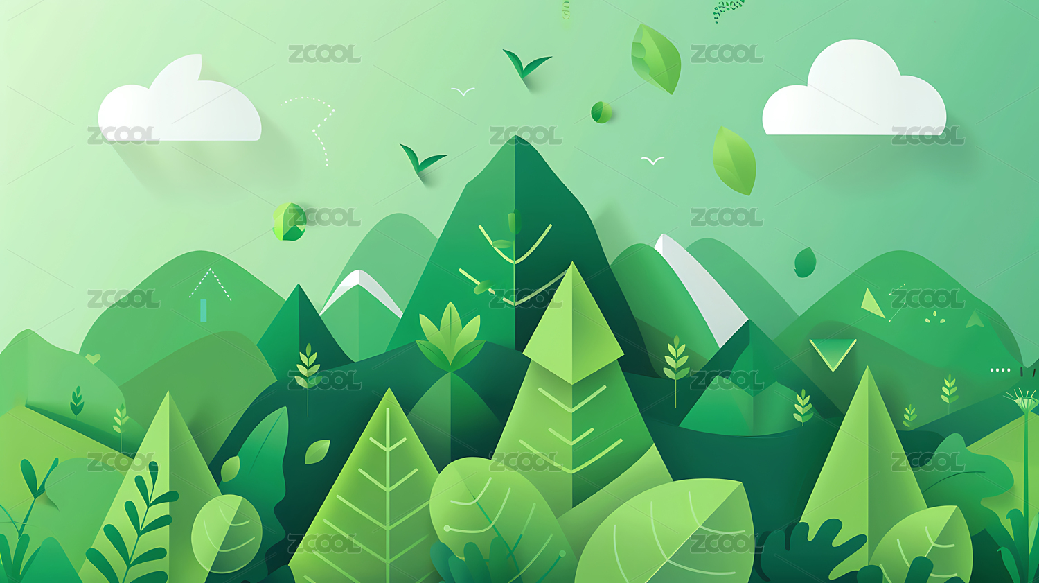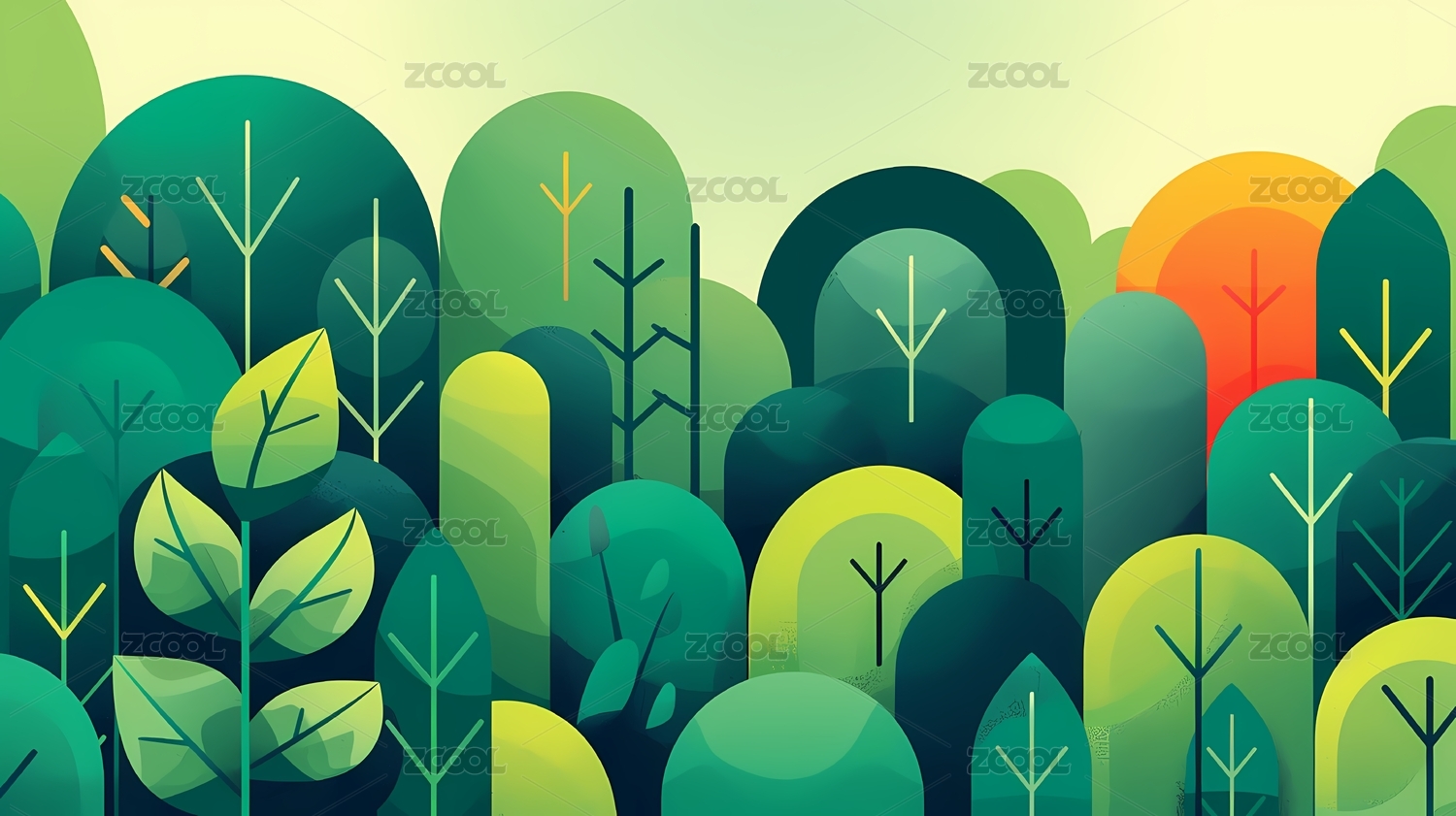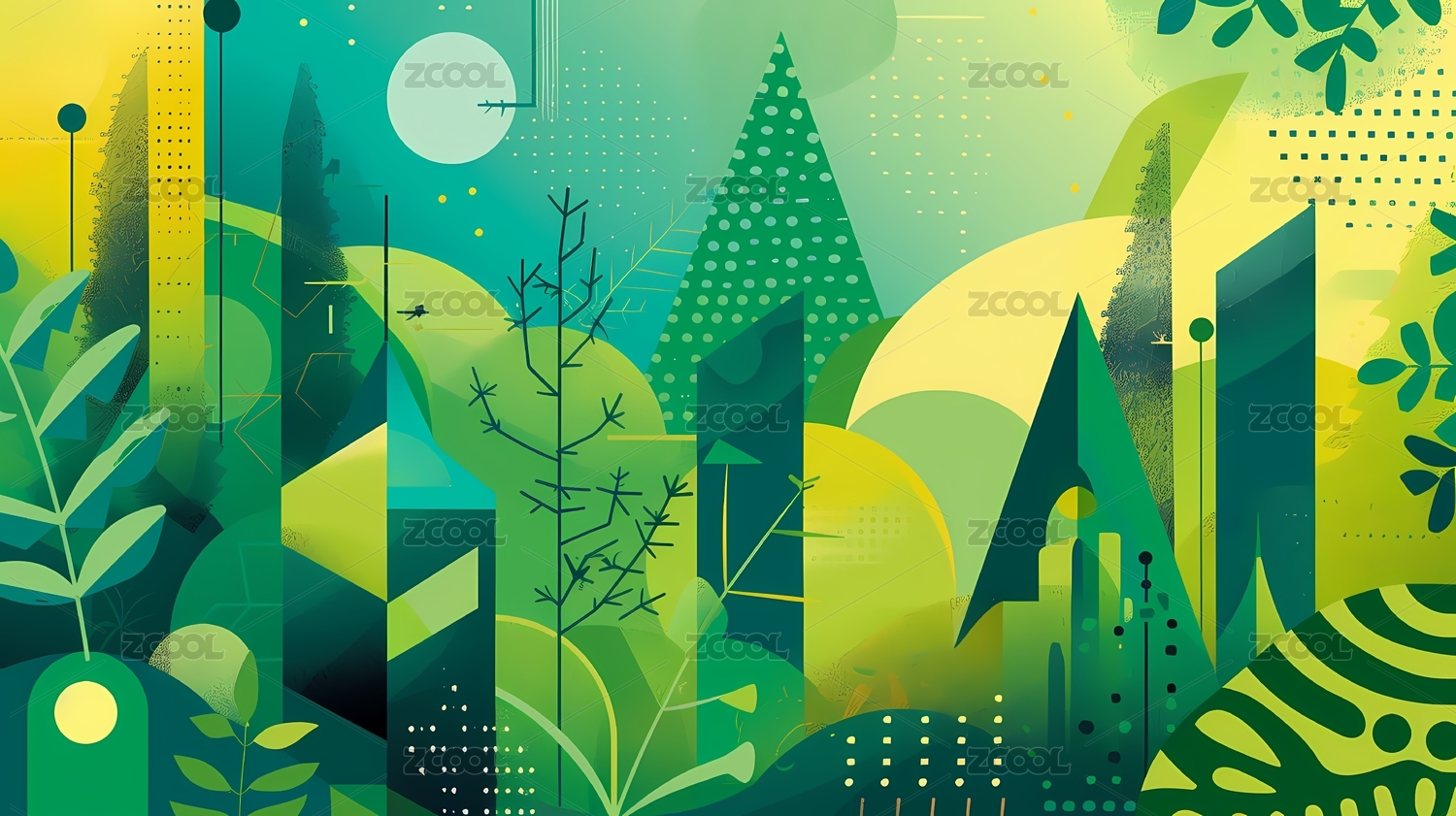 几何抽象绿色森林插图海报背景