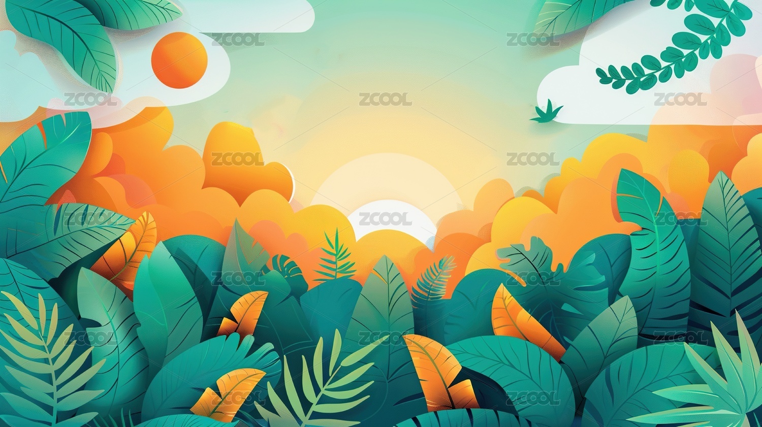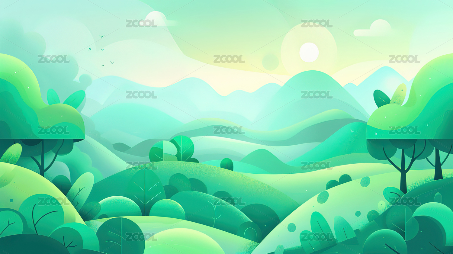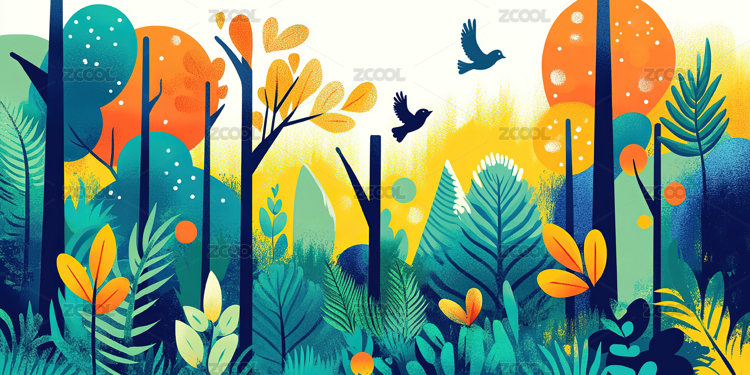雨后绿色森林插图海报背景