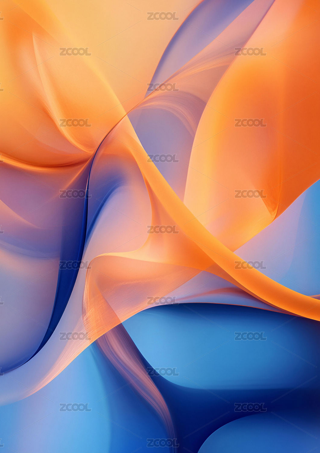 数码橘蓝色渐变层叠波浪抽象图形海报背景