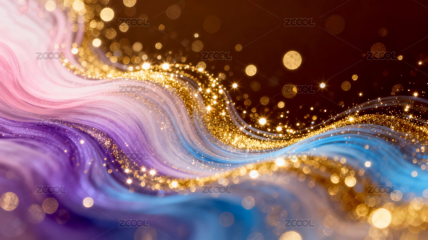 深邃海洋般的流动液体点缀金色光芒