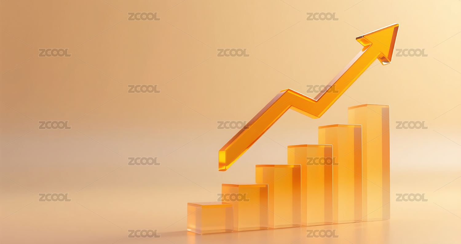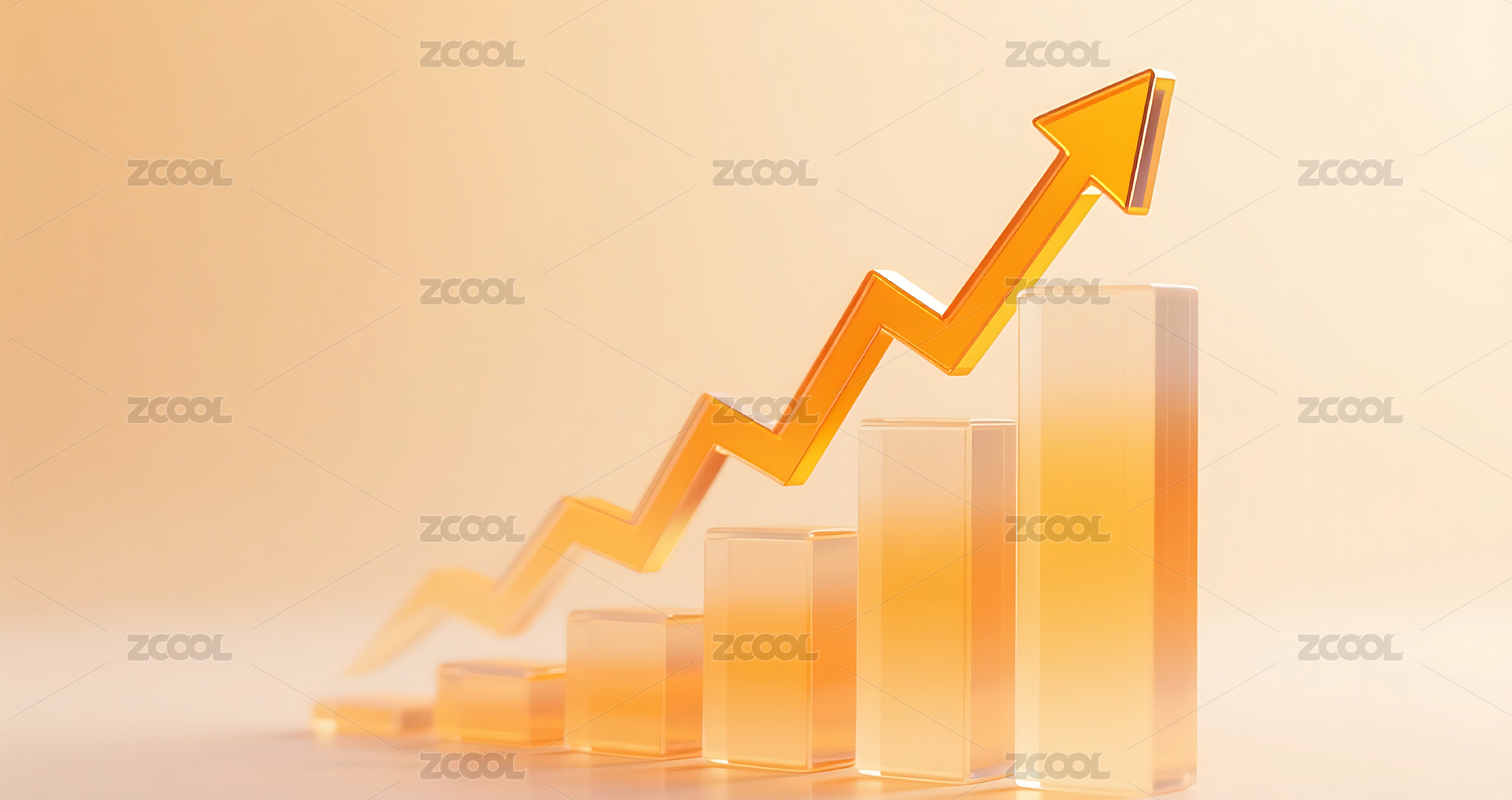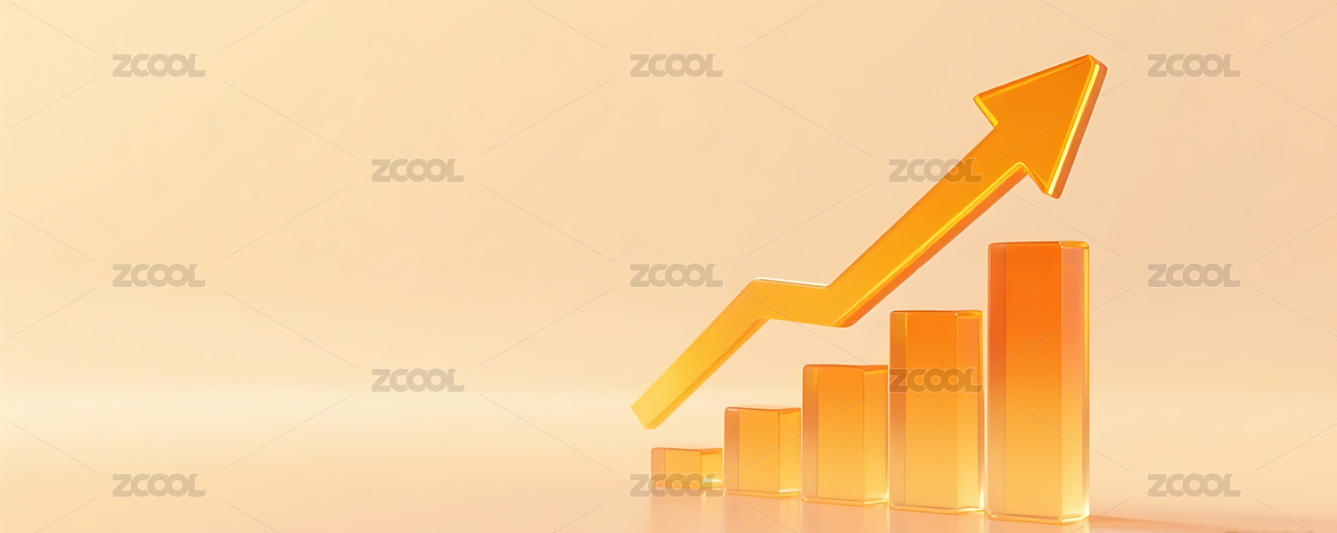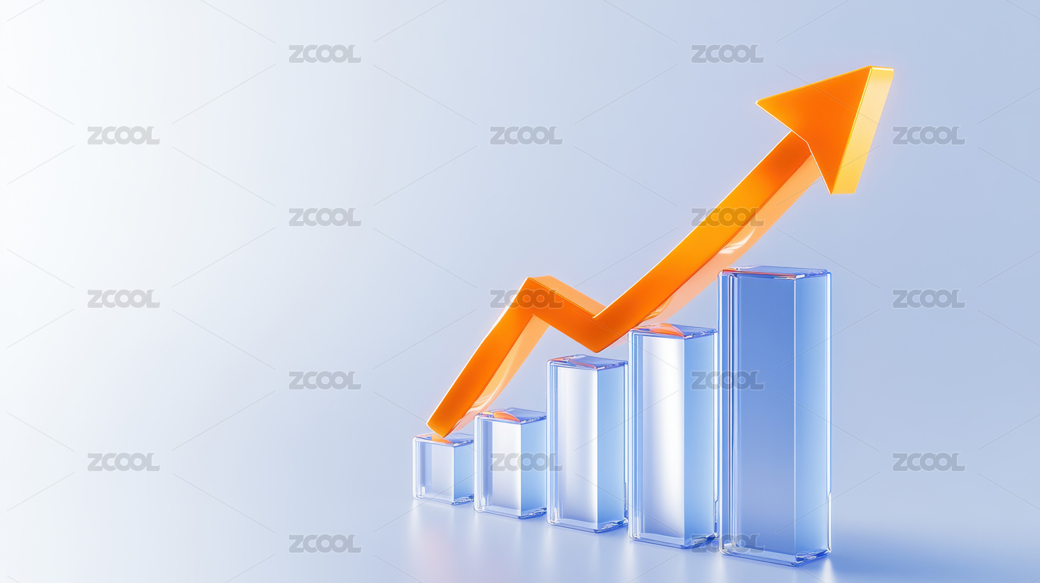 橙色渐变玻璃质感金融柱状图增长箭头背景