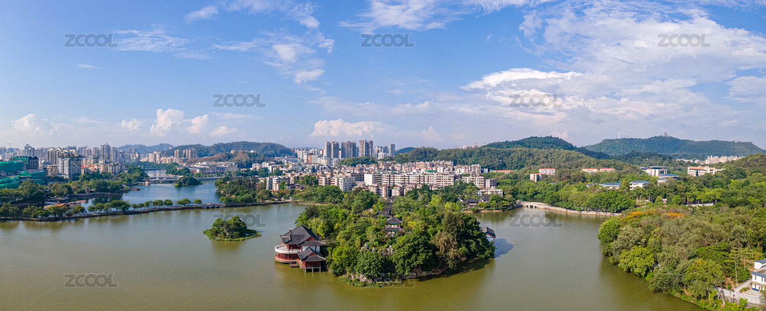 中国广东惠州西湖红花湖5A景区全景图航拍