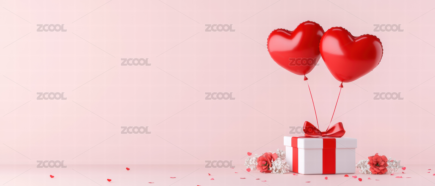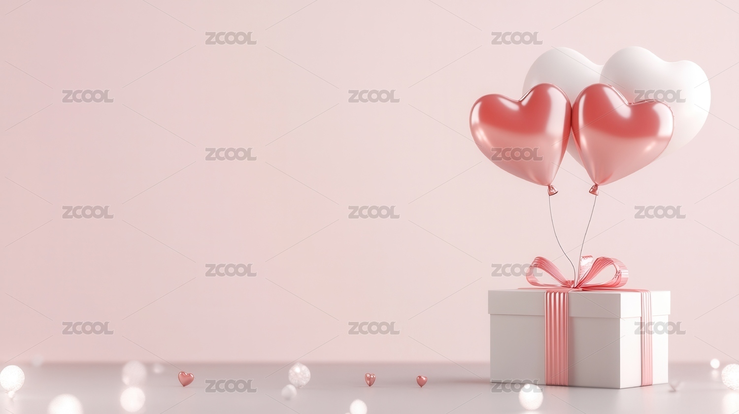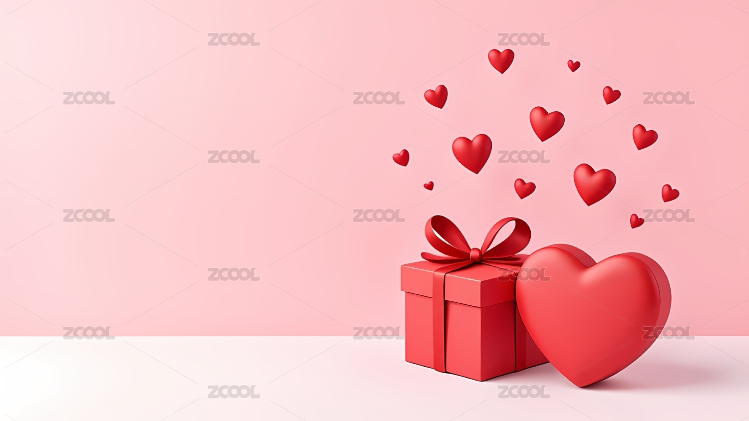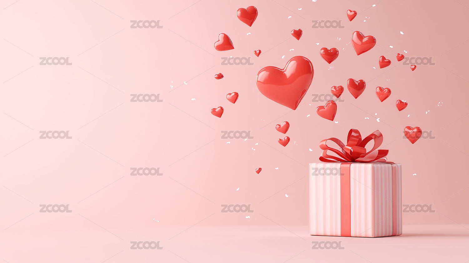 绑着丝带的礼品盒周围漂浮着粉色爱心