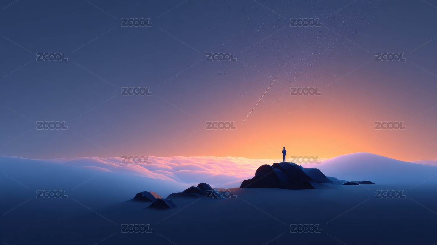 光线, 神秘, 雪山,星空, 冰原, 夜晚, 寒冷, 宁静, 自然, 景观