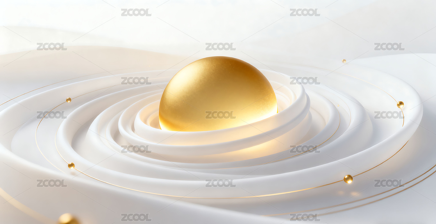 金色线条环绕的白色球体
