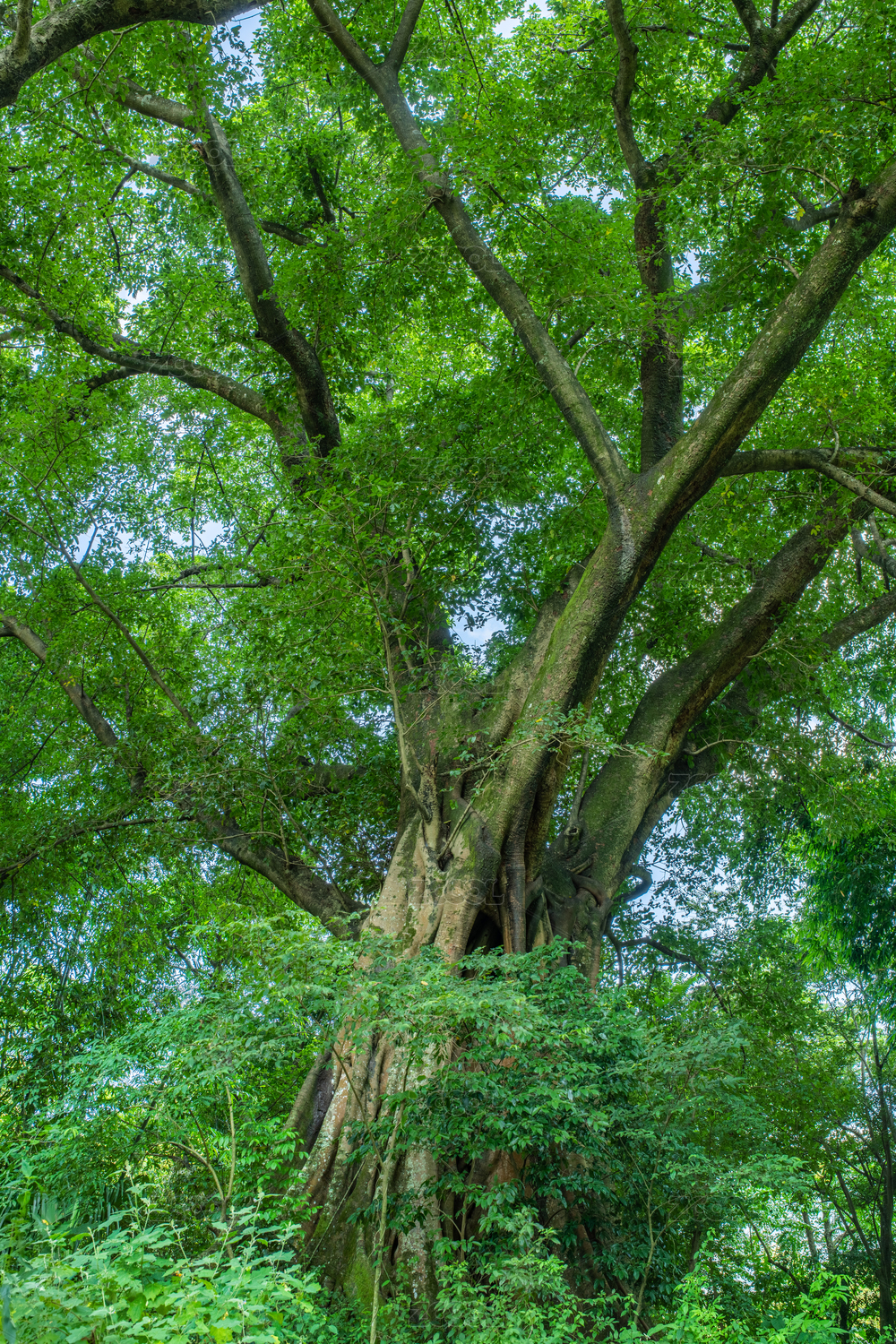 枝繁叶茂的榕树,茂密枝叶交织的古老大树
