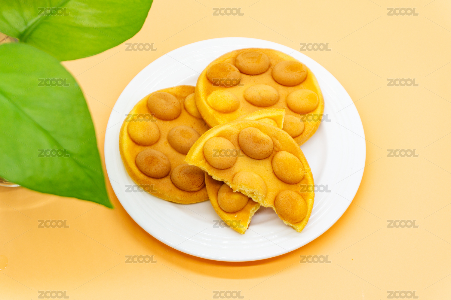 烘焙点心华夫饼特写黄色莫兰迪色系背景