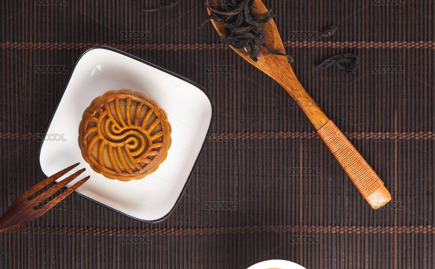 蓝色和白色盘子中的 中秋节传统美食月饼