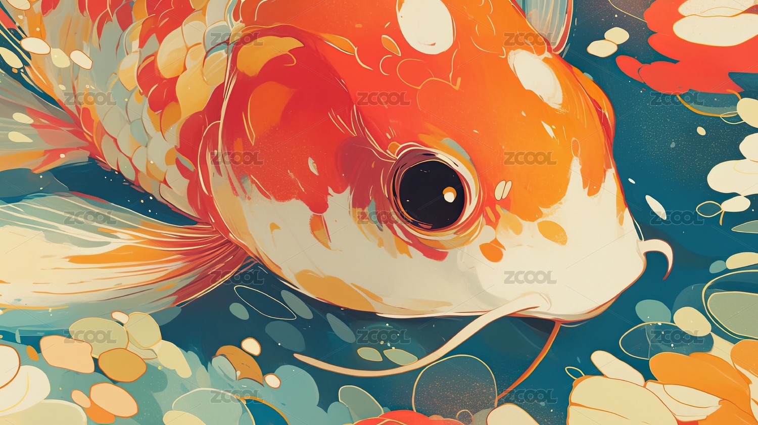 水中游动的漂亮鲤鱼插画