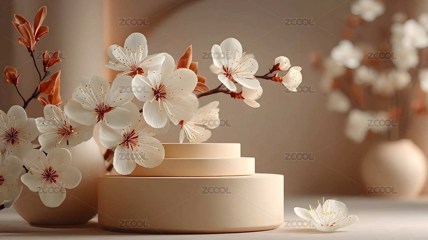 优雅的樱花与珍珠展示台