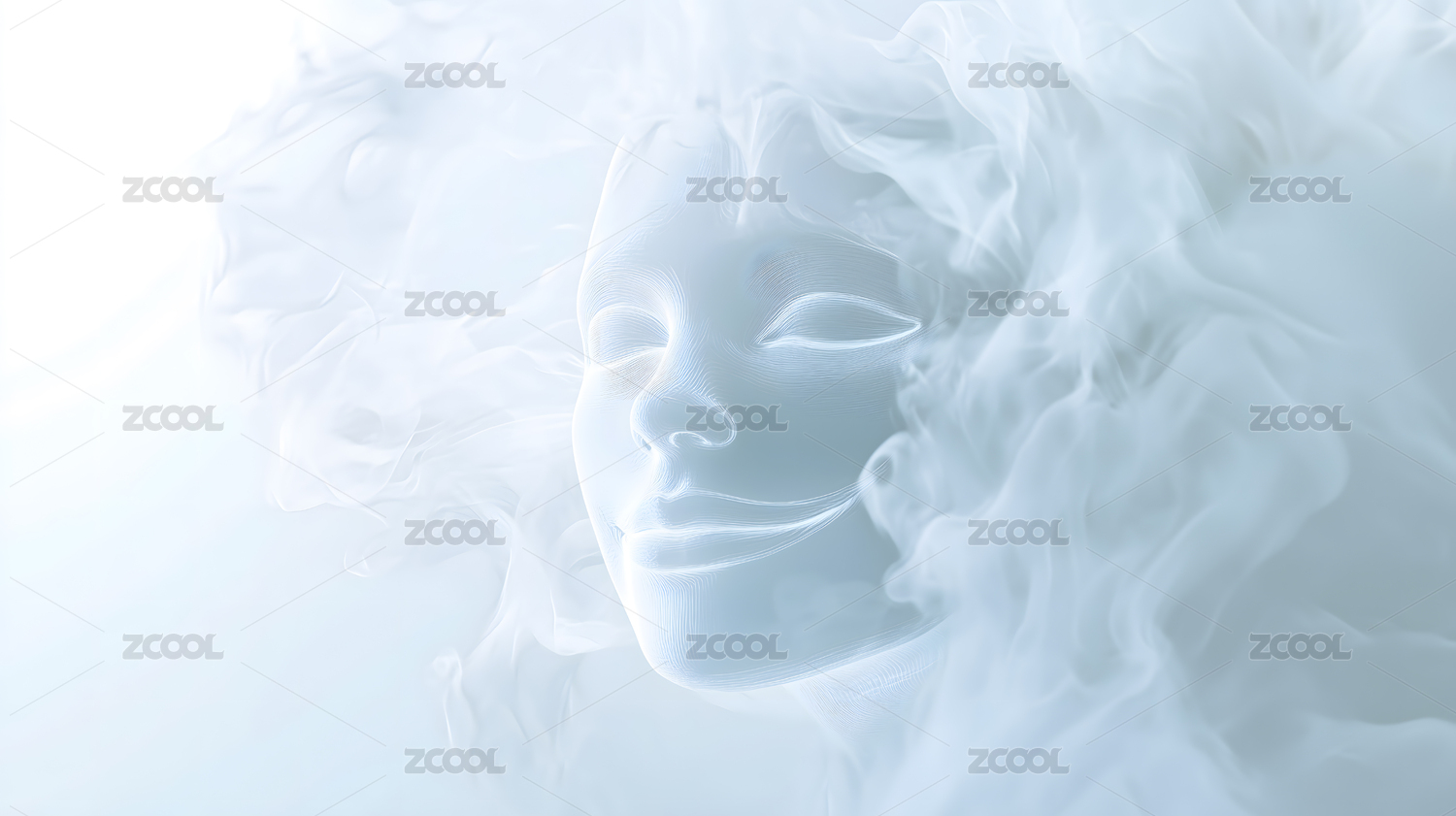 半透明面膜被白色水雾包围