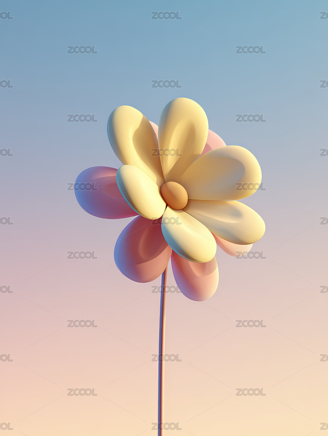 膨胀,花朵,充气,气球,3d,极简,可爱,花,植物,花头