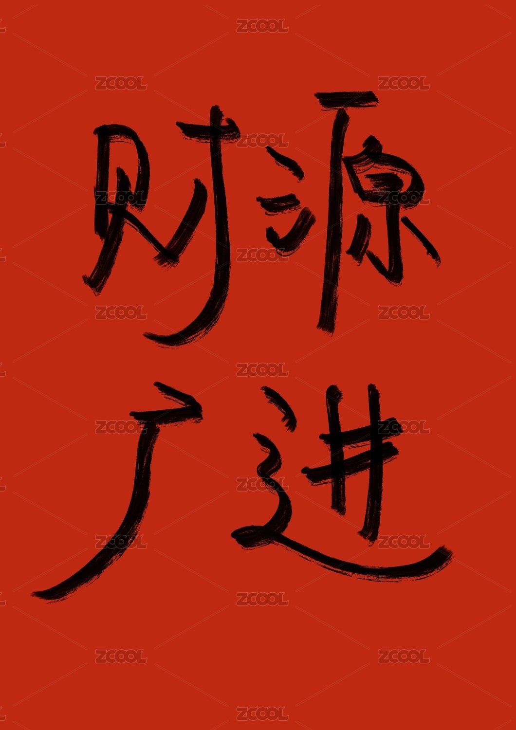 财源广进,吉祥,成语,毛笔字,艺术字,祝福,东方,中国风,汉字,手写