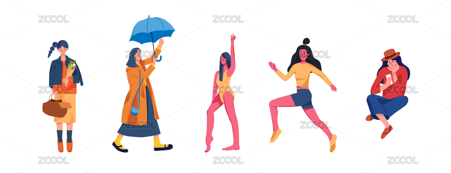 扁平,扁平化,女人,人物,形态,体验,瑜伽,坐姿,站姿,姿势